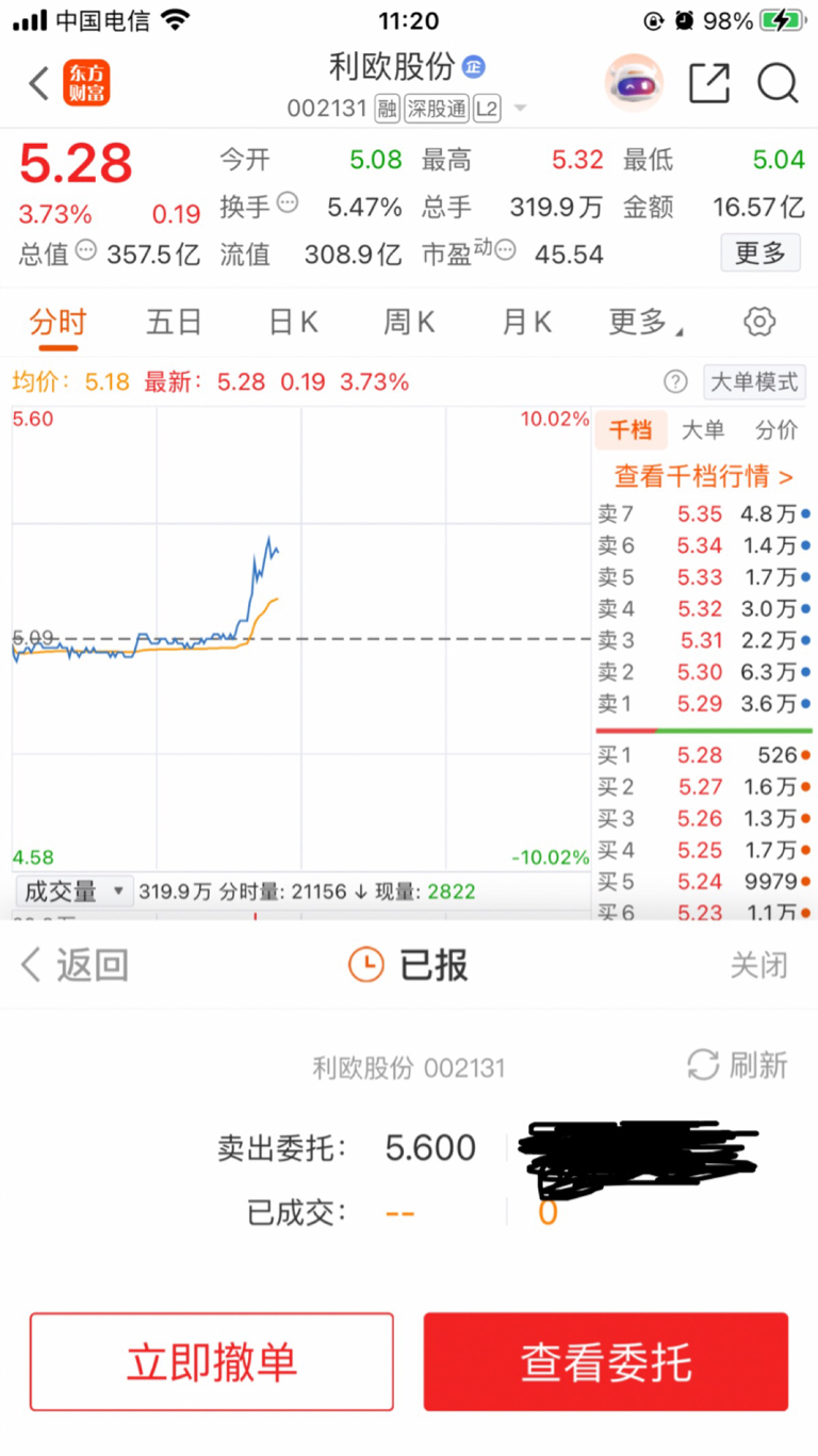 $利欧股份(SZ002131)$ 已委托涨停价卖出哈。#炒股日记# #复盘记录# #强势机会# #收盘点评#
