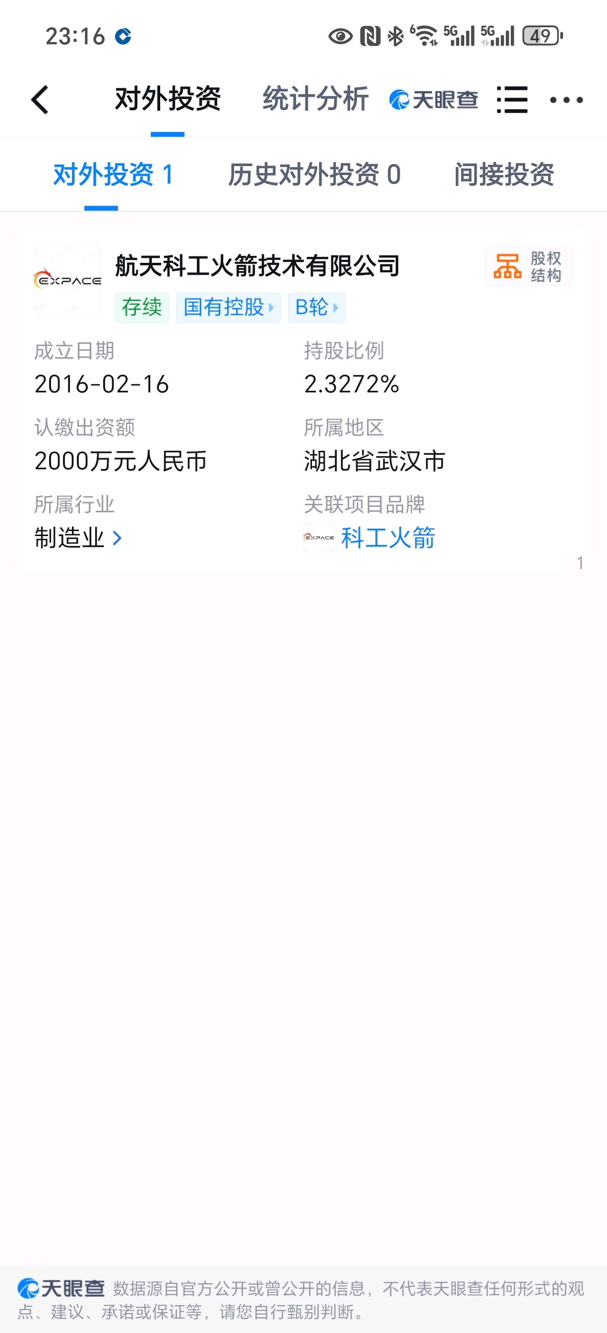 航天科工火箭技术有限公司中国航天三江集团有限公司认缴金额:48,500万(元)56.43472%+湖北长江航天产业投资基金合伙企业(有限合伙)认缴金额:6,000万(元)6.98162%+杭州国核金研投资合伙企业(有限合伙)认缴金额:3,585万(元)4.17152%+国家军民融合产业投资基金有限责任公司认缴金额:3,000万(元)3.49081%+深圳市中军领航投资合伙企业(有限合伙)认缴金额:3,000万(元)3.49081%+金石宇航(淄博市)股权投资合伙企业(有限合伙)认缴金额:2,662.2517万(元)3.0978%+创合航创(湖北)投资合伙企业(有限合伙)认缴金额:2,000万(元)2.32721%+杭州金研航添股权投资合伙企业(有限合伙)认缴金额:2,000万(元)2.32721%+湖南华菱迪策鸿钢投资合伙企业(有限合伙)认缴金额:2,000万(元)2.32721%+湖州尚道天箭股权投资合伙企业(有限合伙)认缴金额:2,000万(元)2.32721%+嘉兴尚道国丰股权投资合伙企业(有限合伙)认缴金额:2,000万(元)2.32721%+