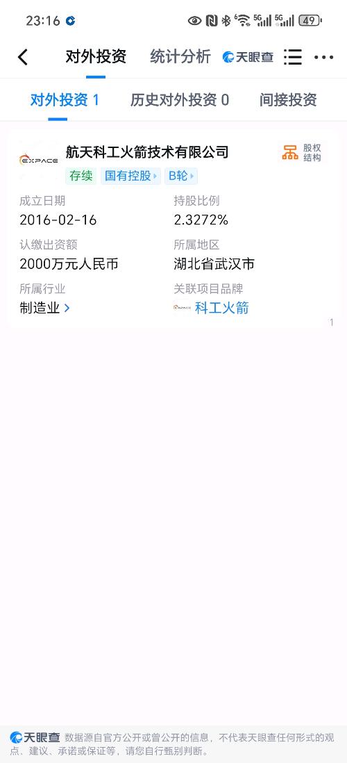 航天科工火箭技术有限公司是中国首家商业模式开展研发和应用的专业化火箭公司,2016年2月16日在武汉注册成立,注册资金3亿元,位于湖北省武汉市新洲区星谷大道,致力于为国内外客户提供商业航天发射服务。公司注册时因"火箭发射"经营范围引发争议,经国家工商总局批复获准。2017年1月完成首次商业航天发射,成功实施快舟一号甲运载火箭"一箭三星"发射。2020年入驻国内首个商业火箭产业园,2021年入选"双百企业"名单。2022年完成B轮融资15.89亿元,并实现快舟系列固体火箭批量化生产。2023年荣登福布斯中国2022新晋独角兽榜单,2024年企业估值达92亿元人民币。截至2024年,公司拥有近30次发射记录,成功执行"天目一号"星座批量发射任务,并开展可重复使用液体火箭技术研发。2025年指导举办"遇见·科学大师见面会"科普活动。