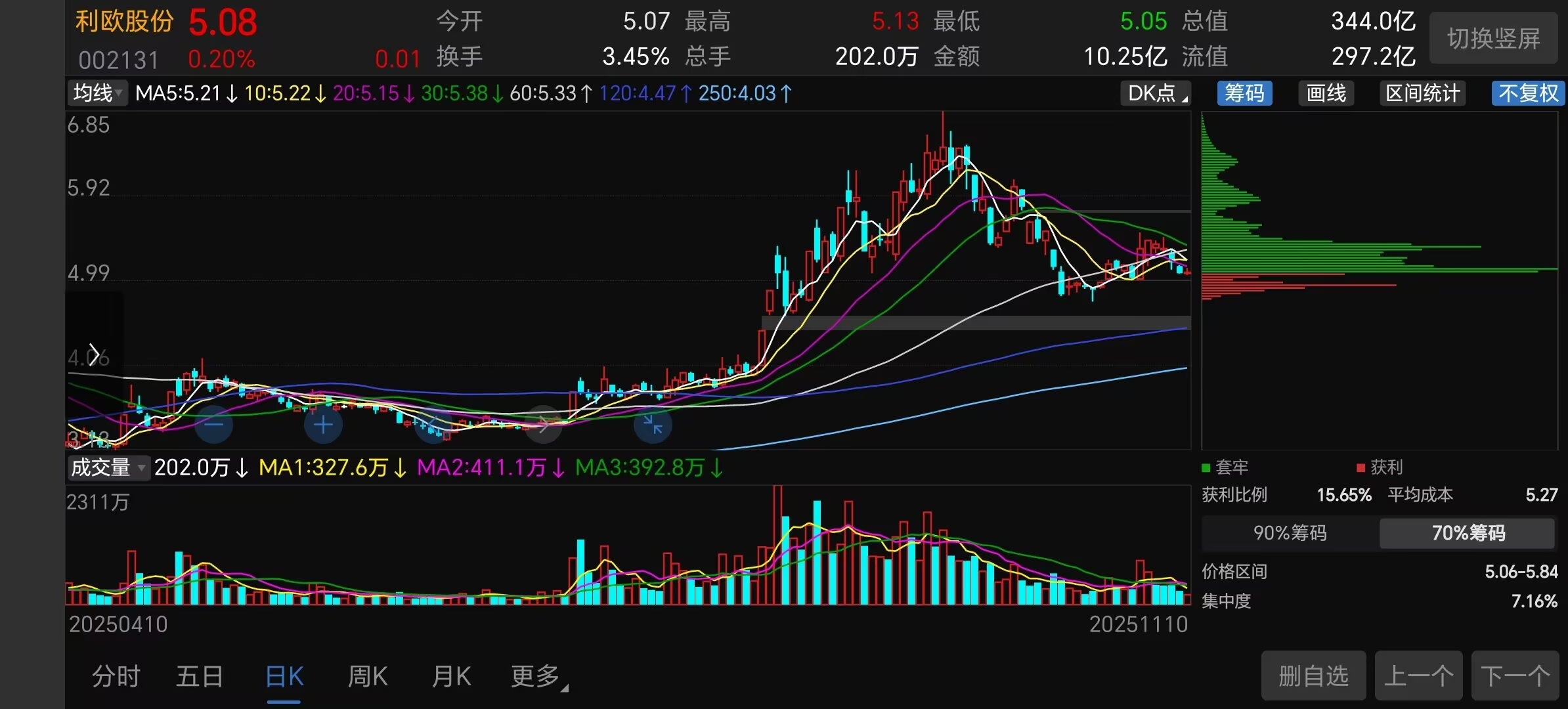 $利欧股份(SZ002131)$ 这是11月11号的筹码分布情况,自行分析庄家操盘思路