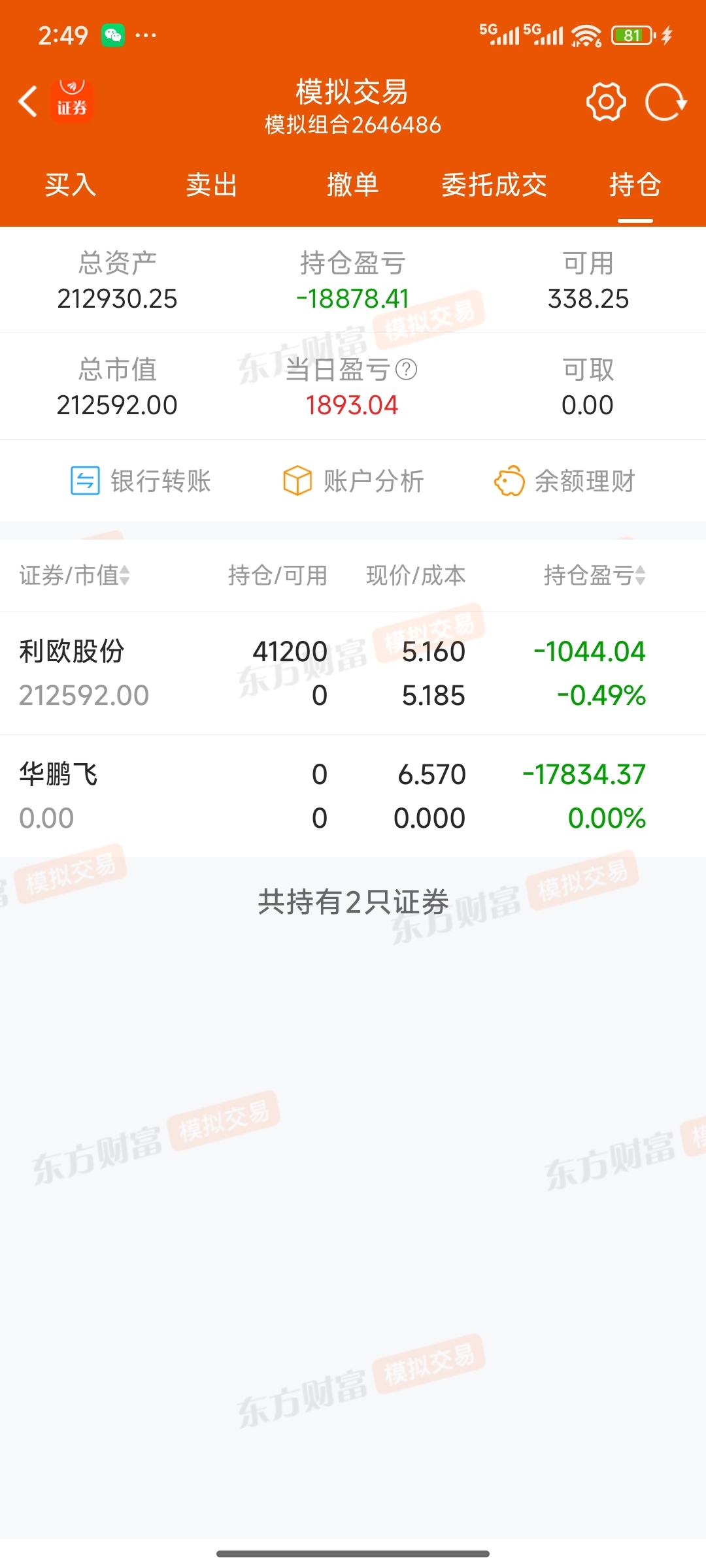 $利欧股份(SZ002131)$ 兄弟们别怕,我模拟盘已经打满了。