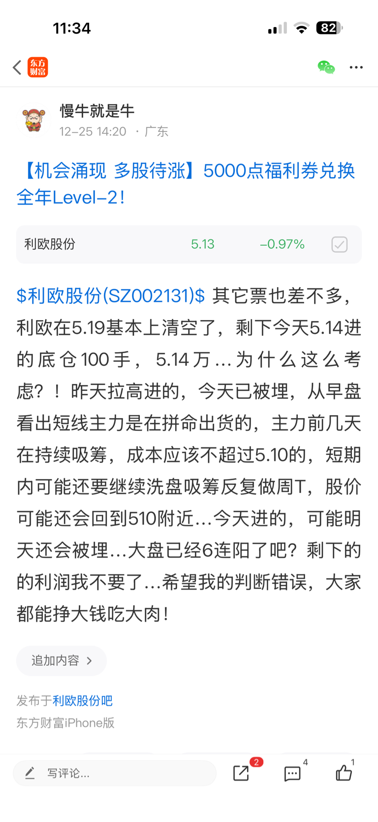 $利欧股份(SZ002131)$ 昨天的语言可能要应验了…赶紧逃命吧,不要以为拉起来是下跌结束,那是诱多,大跌尤其是小盘股的大跌才刚刚开始。12月底的大逃亡本应该早一周就要开始上演了,结果硬生生推迟了一周。这样来看,大逃亡可能会更加猛烈。利欧估计又要回到5元附近,甚至跌破5元回到4.9…我把昨天514进的底仓在519就清空了!祝大家好运多多!