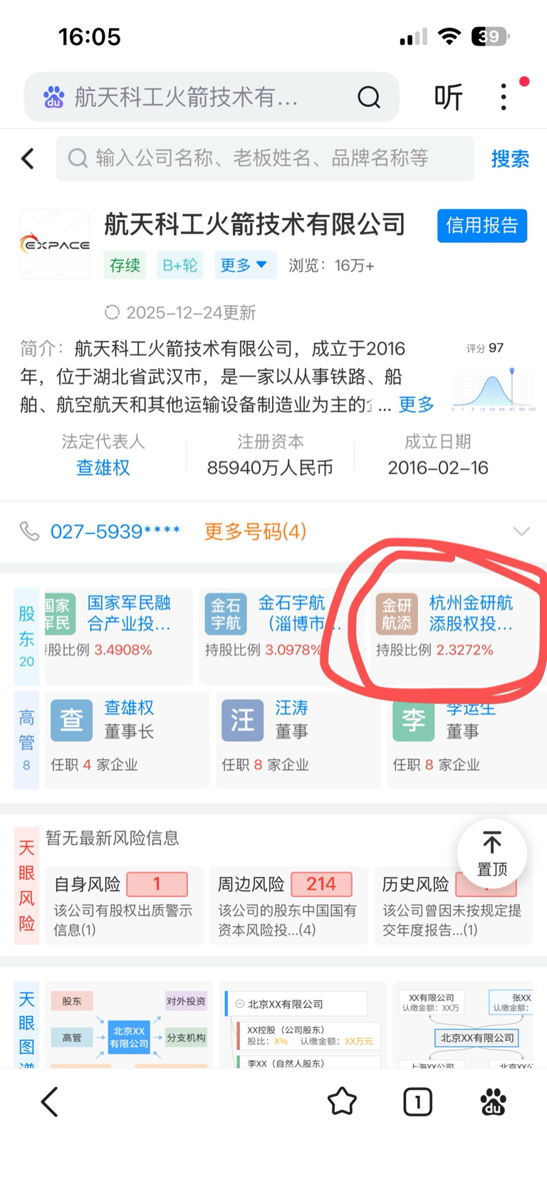 旗下子公司持有商业航天独角兽“航天科工”2.227%股份,还投资了南京吉凯微波技