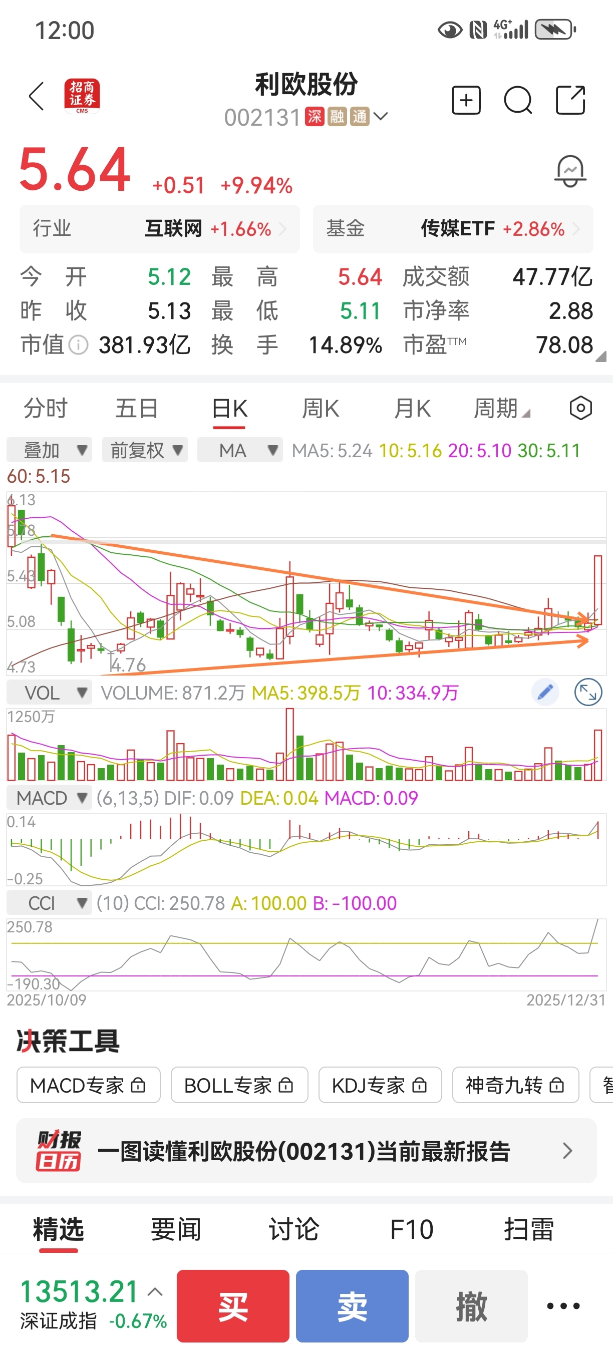$利欧股份(SZ002131)$ 收敛三角放量突破