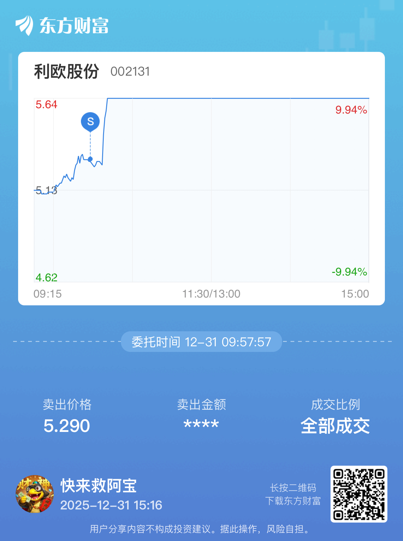 温馨提示: 1.根据《证券法》规定,禁止编造、传播虚假信息或者误导性信息,扰乱证券市场;2.用户在本社区发表的所有资料、言论等仅代表个人观点,与本网站立场无关,不对您构成任何投资建议。用户应基于自己的独立判断,自行决定证券投资并承担相应风险。《东方财富社区管理规定》