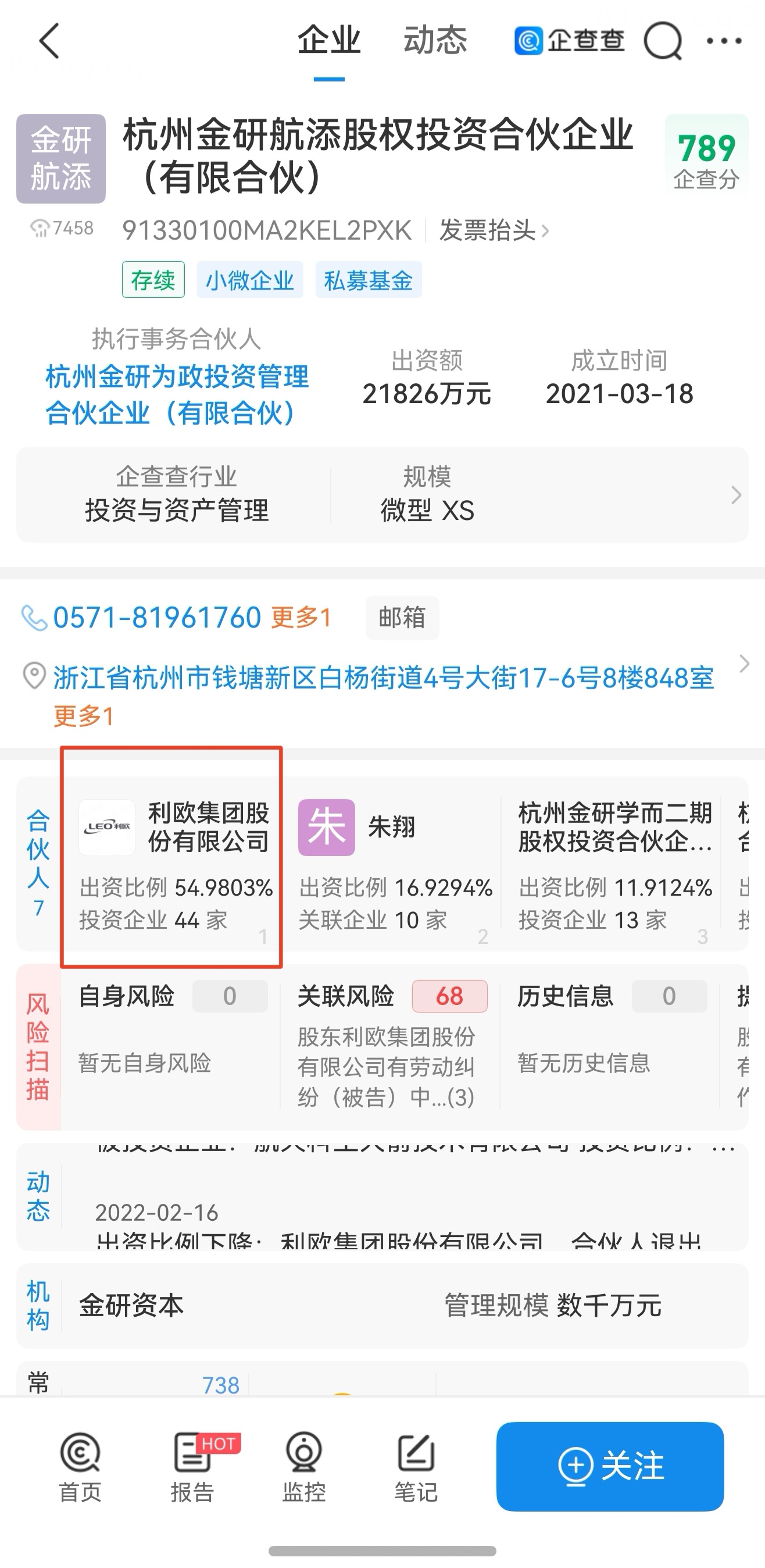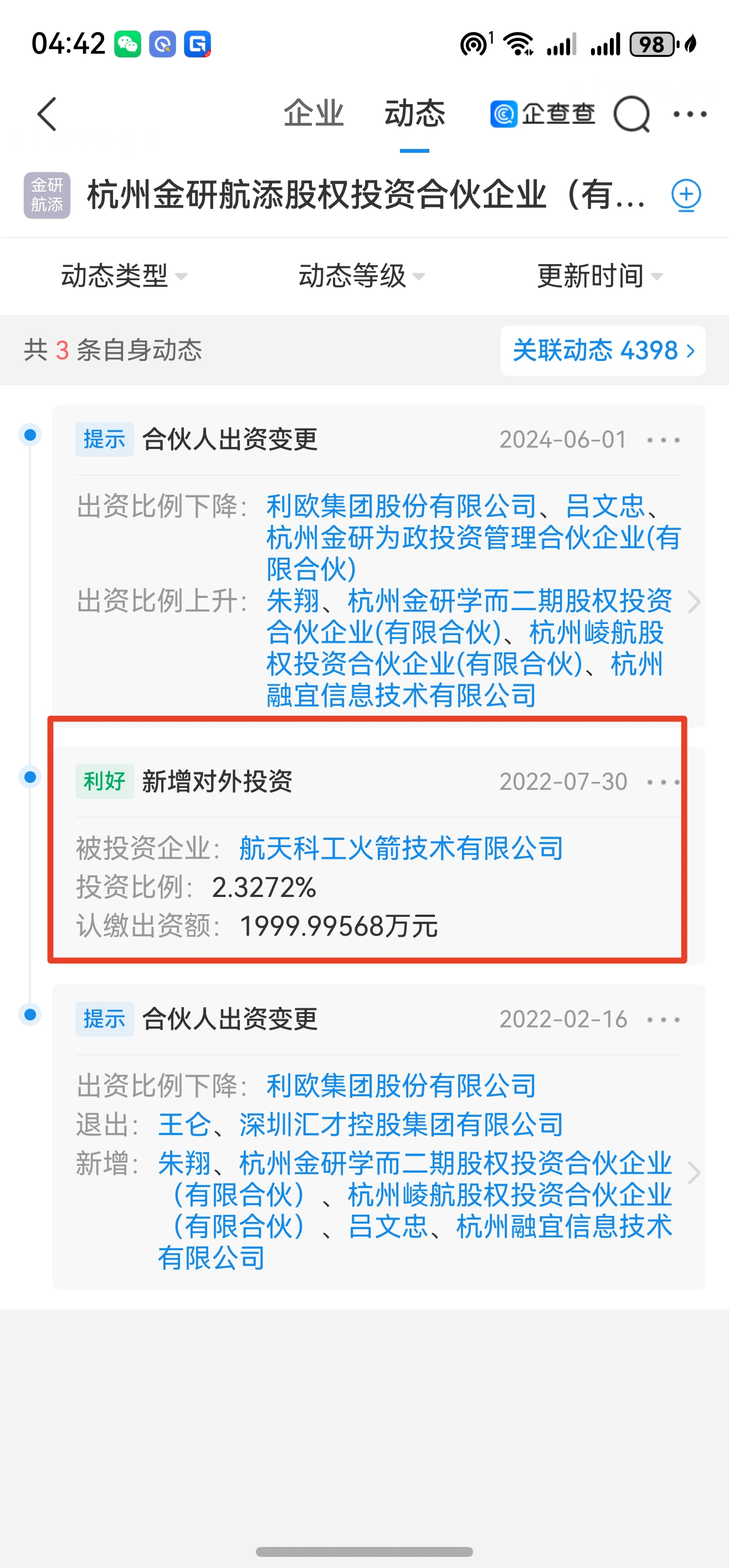 大家可以给利欧股份添加一下商业航天概念,实打实的股权投资