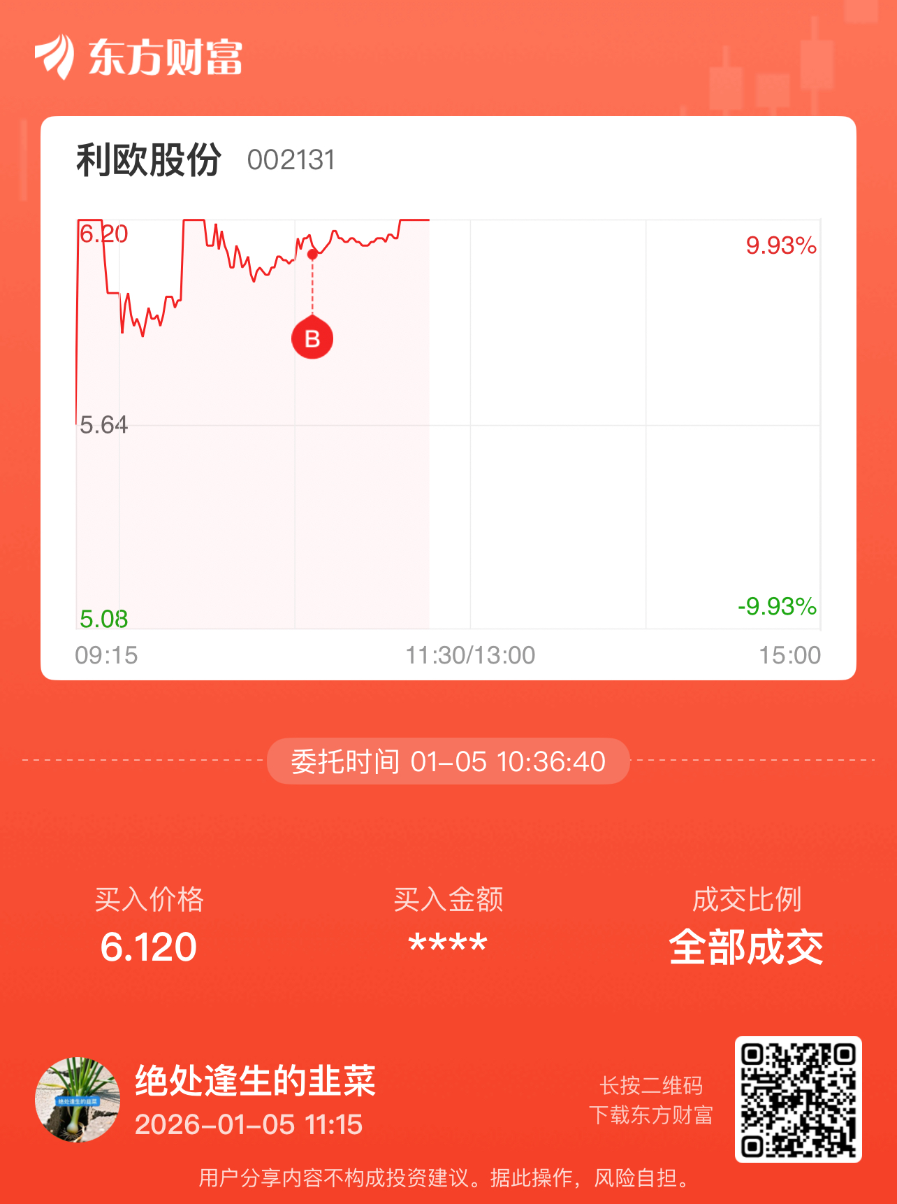 温馨提示: 1.根据《证券法》规定,禁止编造、传播虚假信息或者误导性信息,扰乱证券市场;2.用户在本社区发表的所有资料、言论等仅代表个人观点,与本网站立场无关,不对您构成任何投资建议。用户应基于自己的独立判断,自行决定证券投资并承担相应风险。《东方财富社区管理规定》