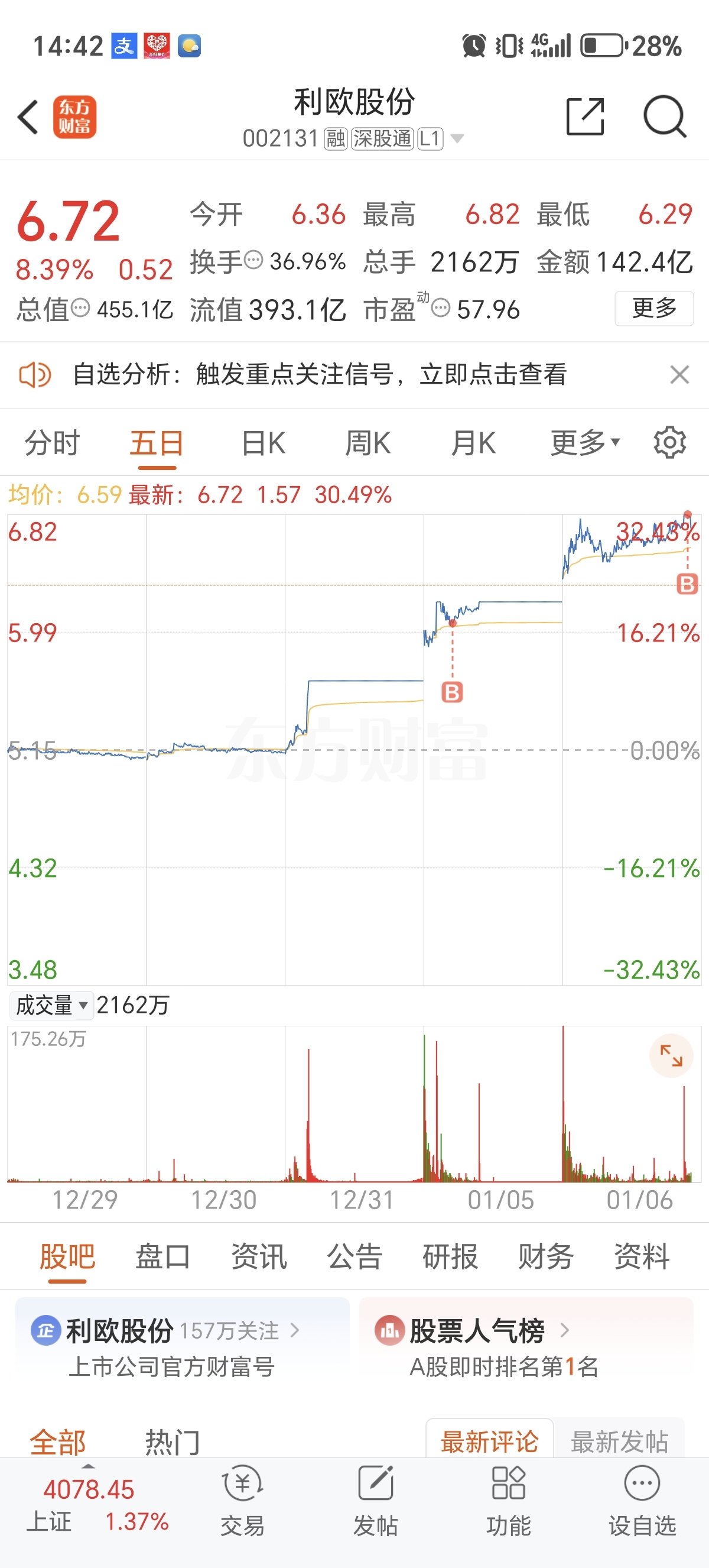 $利欧股份(SZ002131)$ 谁有我刚,明天吃肉还是吃面,看天意