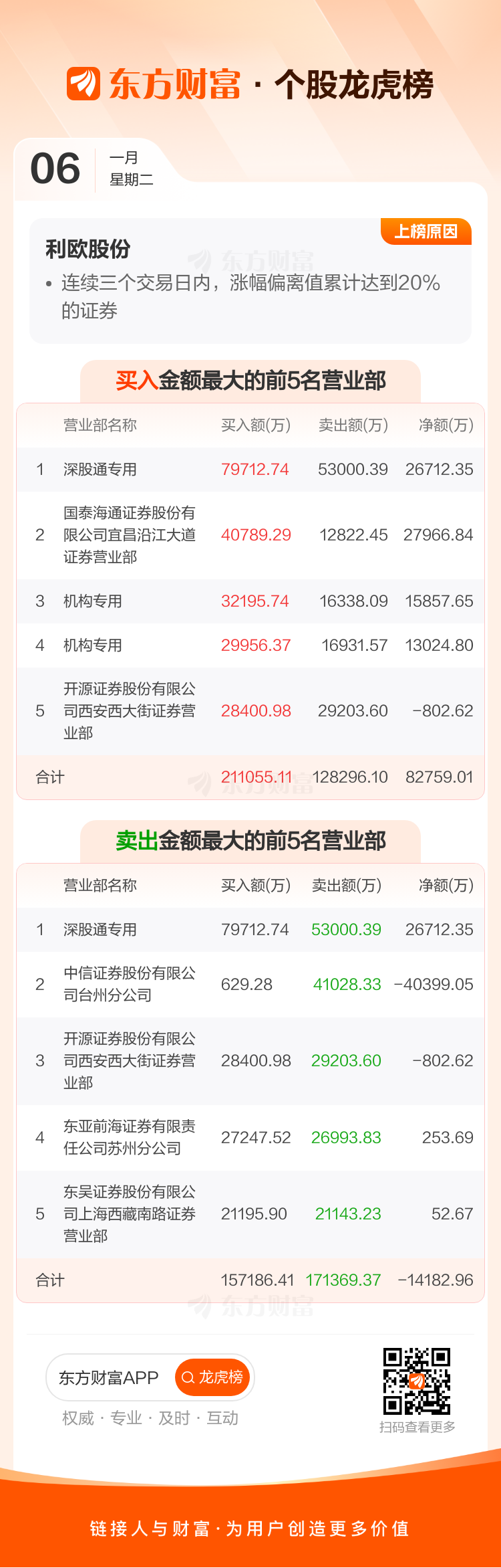 利欧股份(002131)龙虎榜数据(01-06)