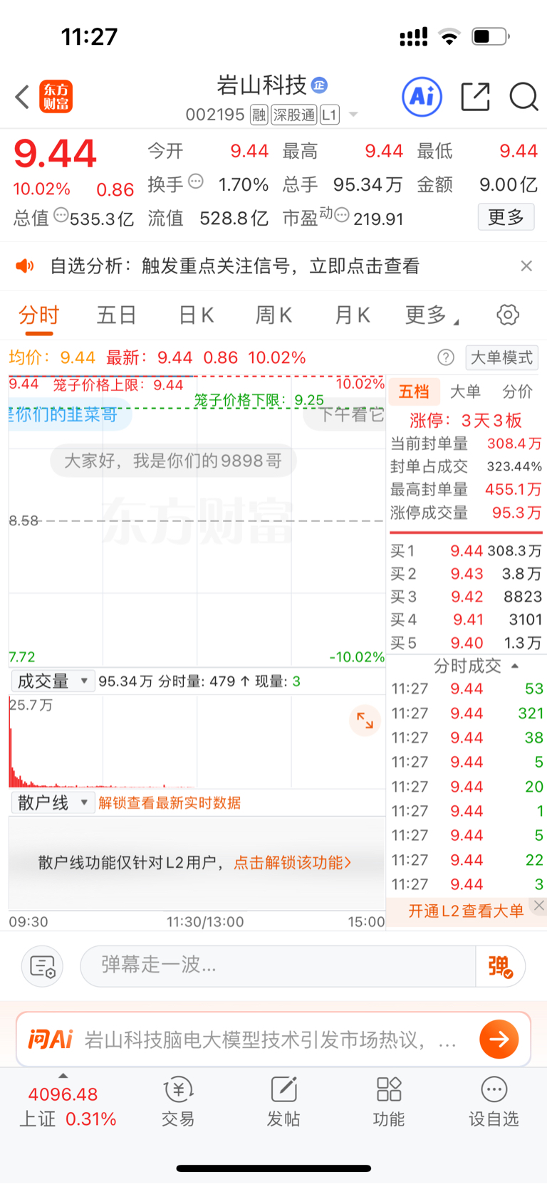 $利欧股份(SZ002131)$ $岩山科技(SZ002195)$ 岩山不泄,利欧不涨