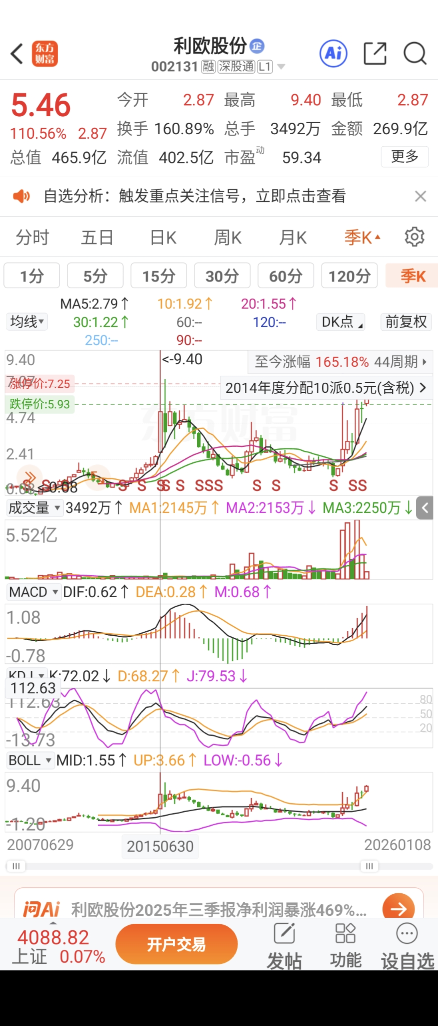 $利欧股份(SZ002131)$ 欧皇创新高指日可待