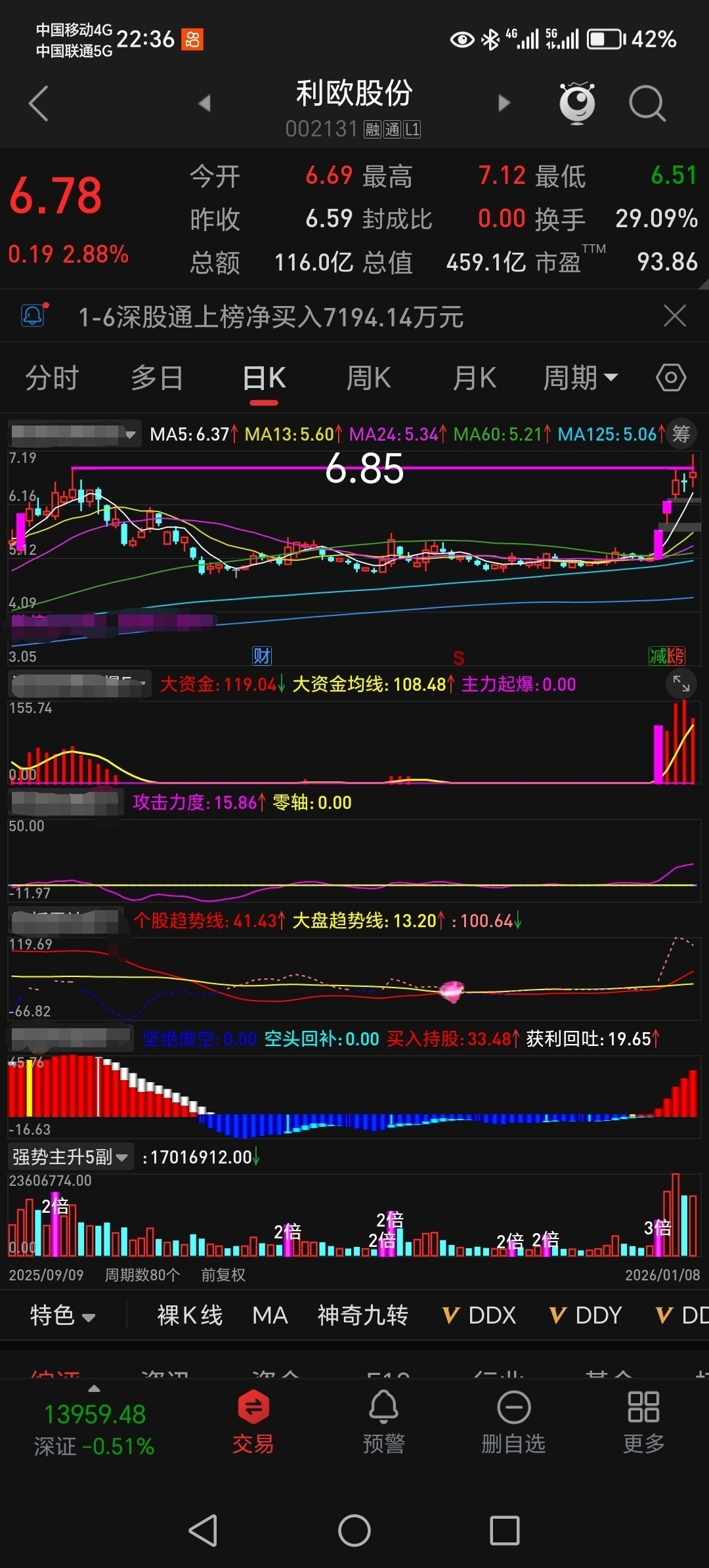 明天利欧开盘5日线上移至6.7附近,盘中回踩5日线一个字,干!攻克6.85前期高