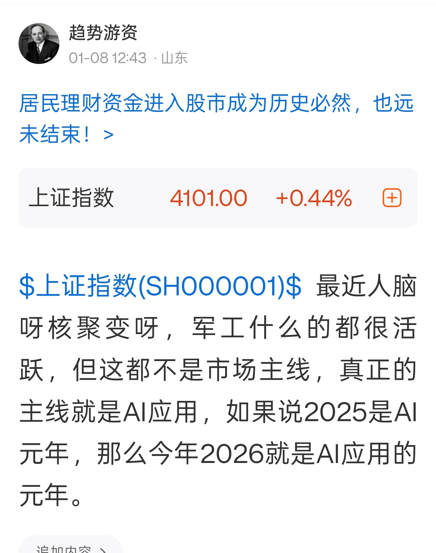 郑重声明:用户在财富号/股吧/博客等社区发表的所有信息(包括但不限于文字、视频、音频、数据及图表)仅代表个人观点,与本网站立场无关,不对您构成任何投资建议,据此操作风险自担。请勿相信代客理财、免费荐股和炒股培训等宣传内容,远离非法证券活动。请勿添加发言用户的手机号码、公众号、微博、微信及QQ等信息,谨防上当受骗!