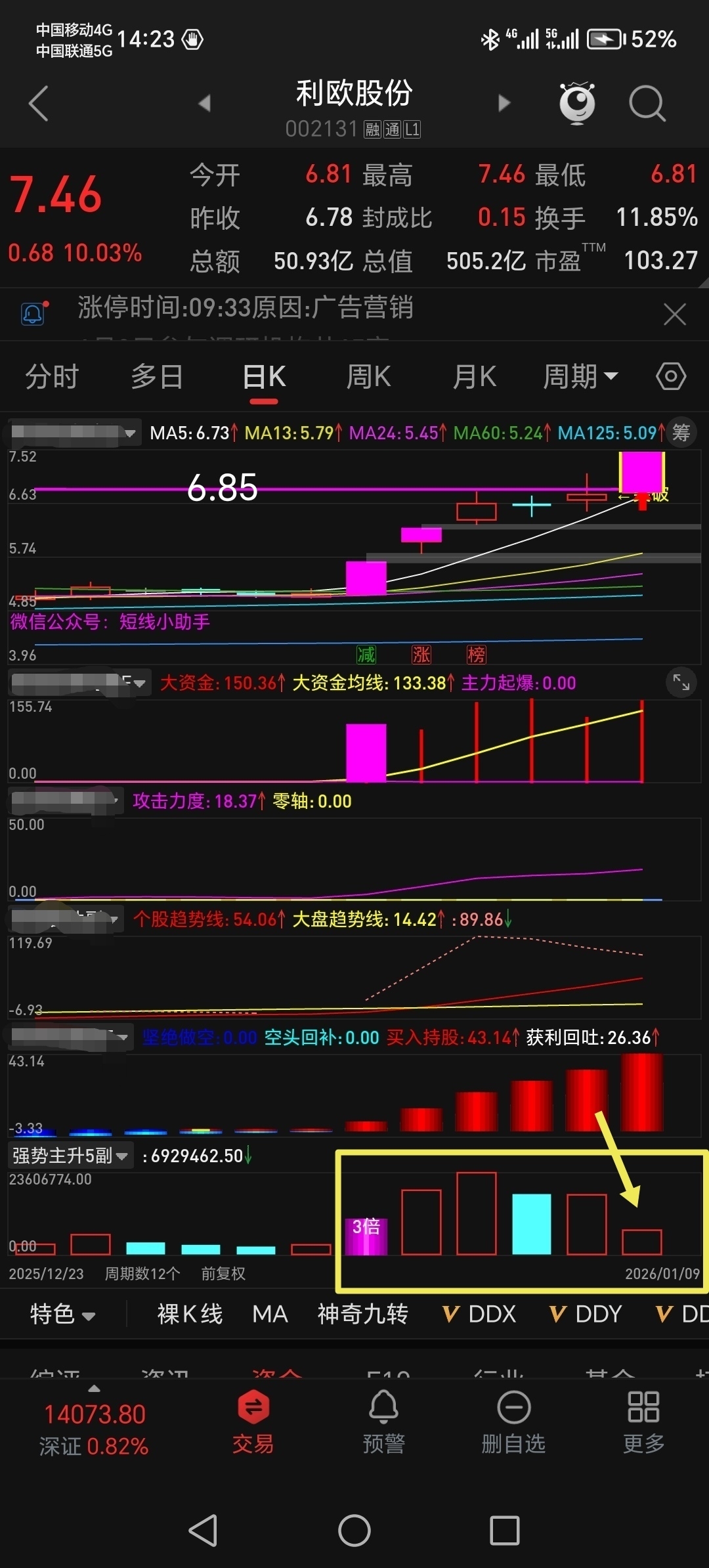 今日利欧缩量涨停,经过3天的大幅换手洗盘,分歧转一致,超级主力展开主升行情,5日