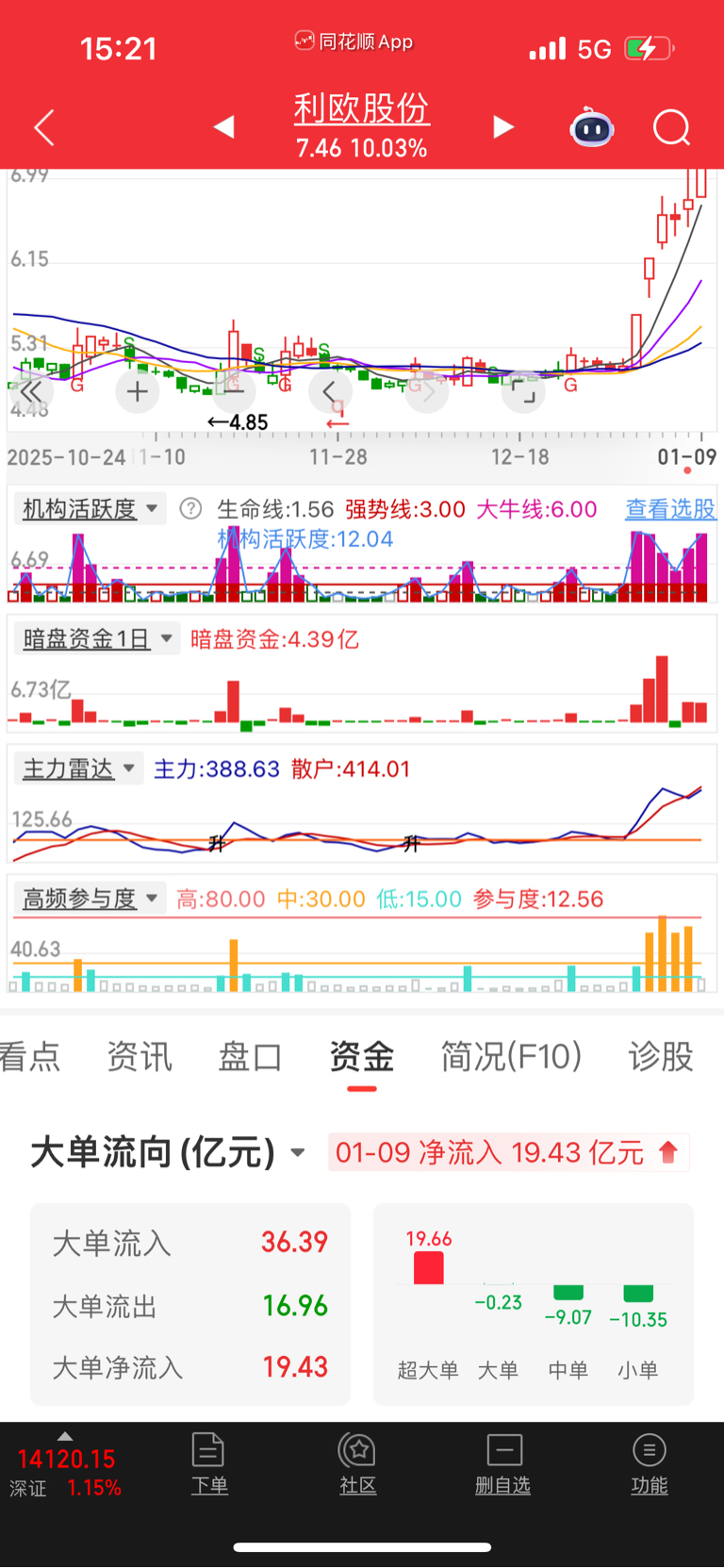 大家今天都赚笑了,利欧股份明盘资金,暗盘资金,同时大幅净流入,继续持股,下周有突