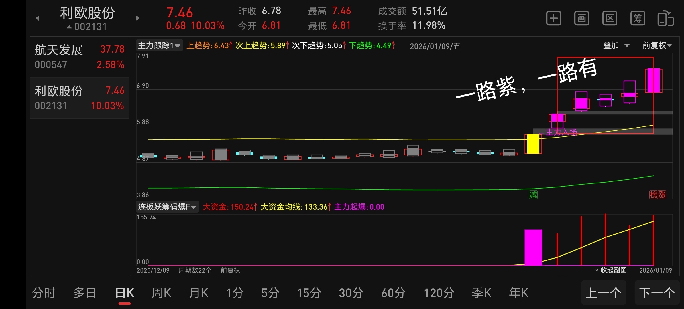 $利欧股份(SZ002131)$ 一路紫一路有,利欧这才到哪儿啊,有些人就想着怎么跑,眼光有多远,世界就有多大,5日线做防守,不破不出