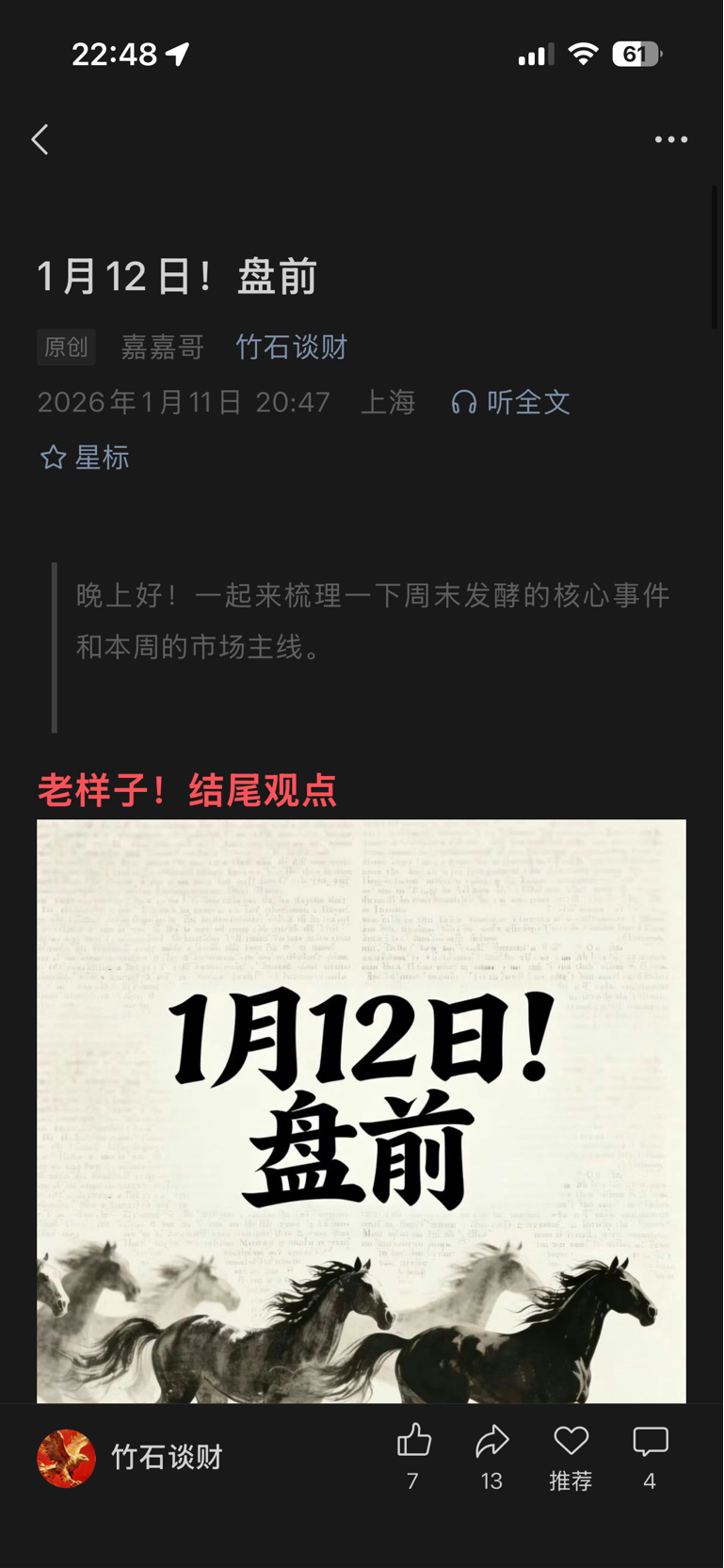 1月12日盘前。了解一下!他这个观点真赞