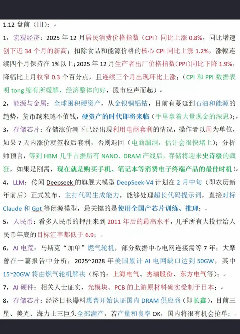 1.12周一财经热点新闻!1.能源金属2.存储芯片3.人民币汇率4.算力,5.智