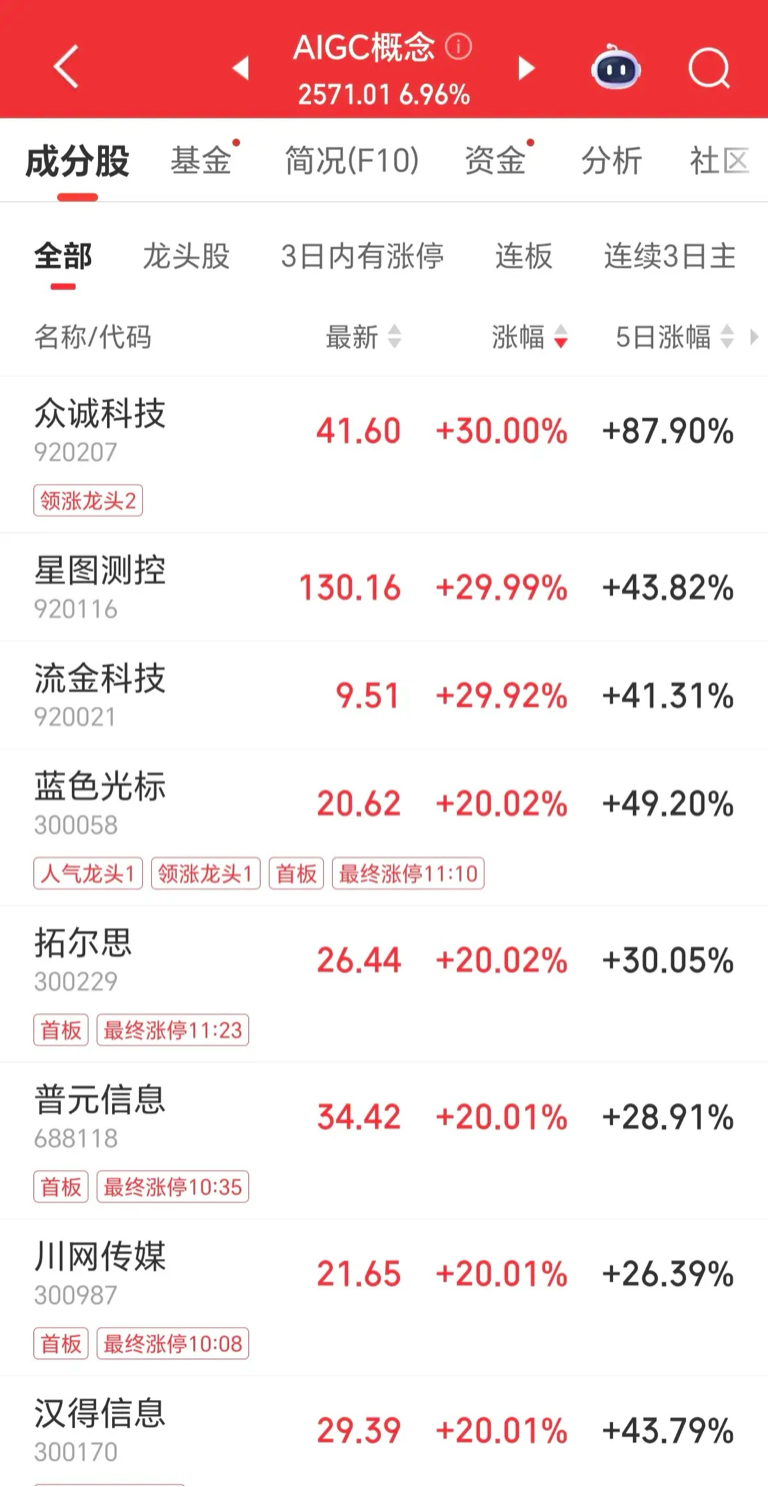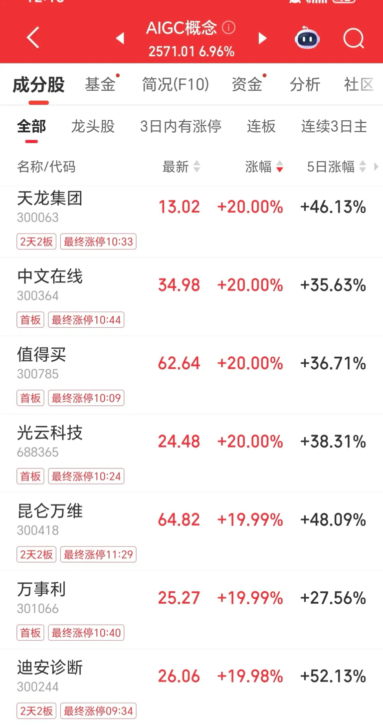 智能体AI+AIGC:现涨停潮,52股涨停!