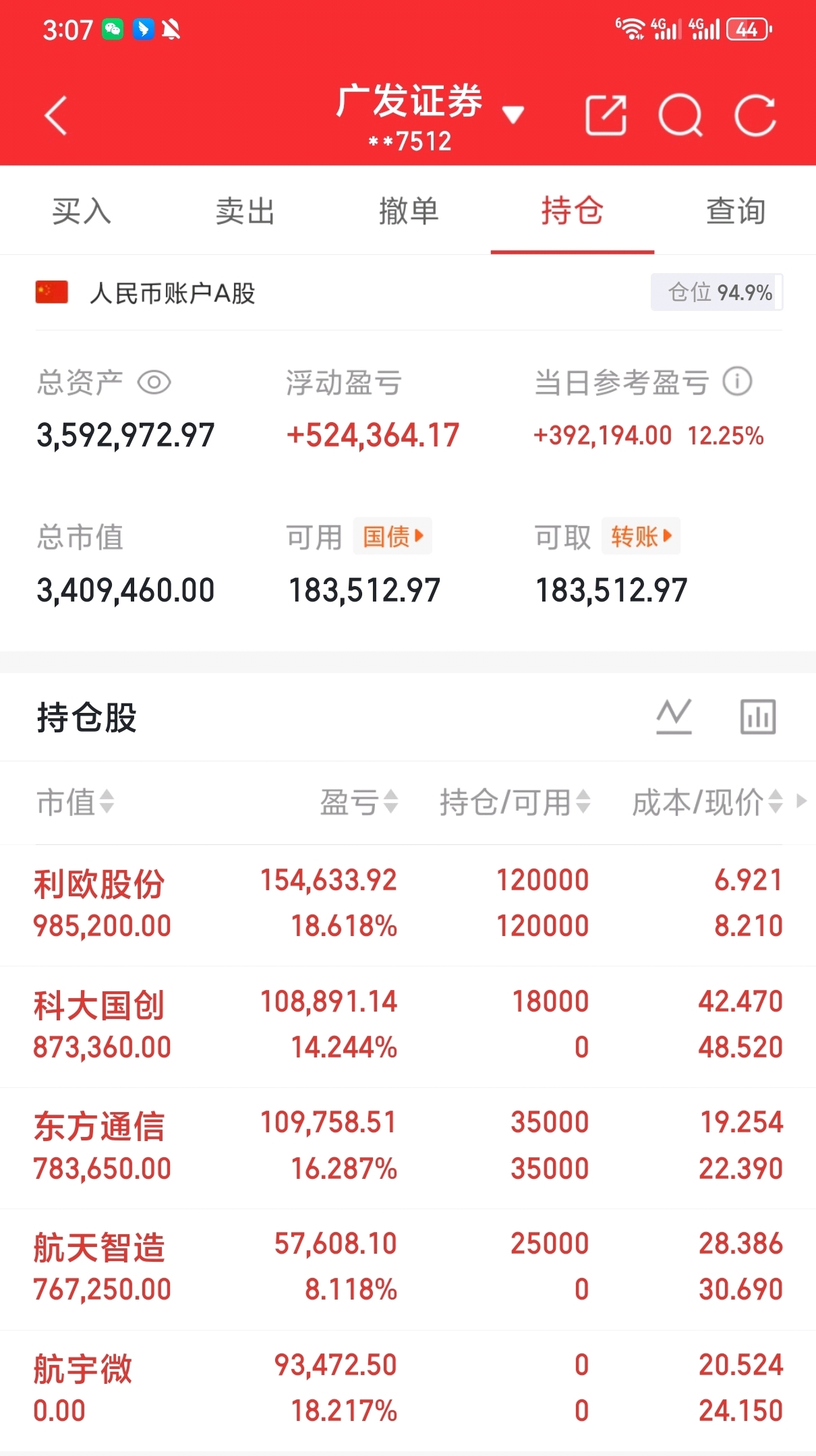 早盘水下登机了航天智造,下机了航宇微,午后转机到了科大国创,利欧和东方继续在头等舱坐着,因为还没到目的地!$利欧股份(SZ002131)$ $东方通信(SH600776)$ $航天智造(SZ300446)$