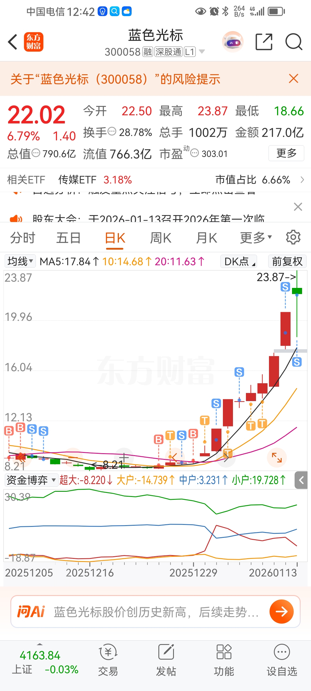 $蓝色光标(SZ300058)$ 昨天减仓四分之一,今天下午看情况继续减。