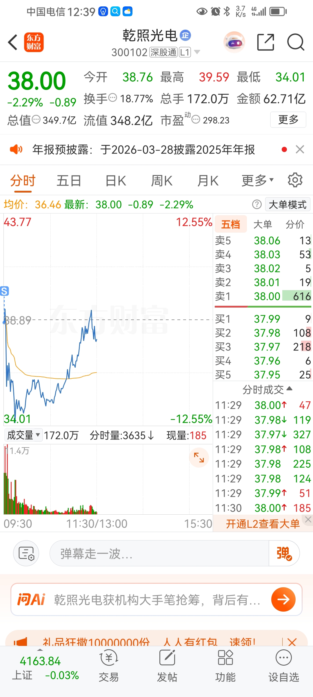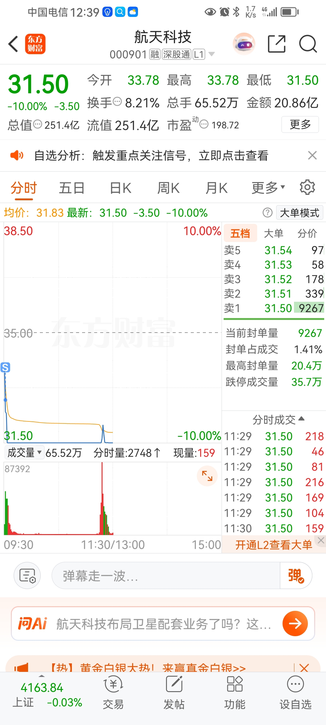 $航天科技(SZ000901)$ 商业航天退潮了,早上开盘不及预期止盈了,乾照光电也止盈了。