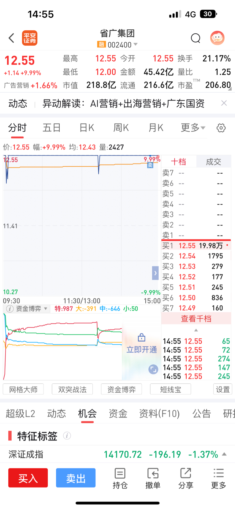走运,持仓四个一字涨停。但是可恶,视觉、省广洗了我