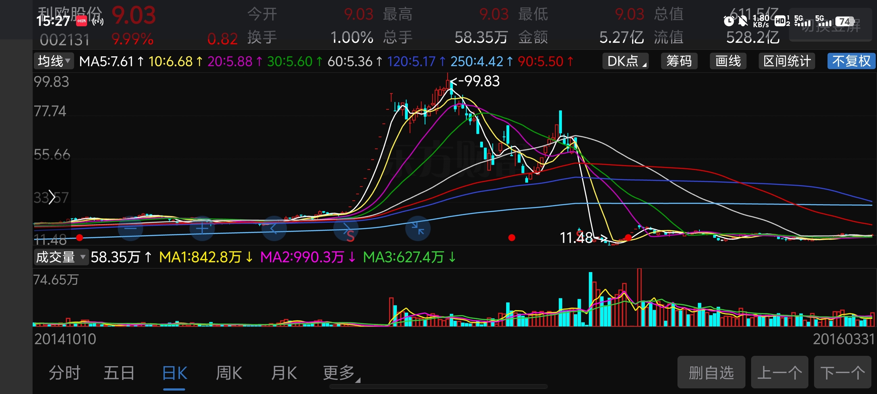 $利欧股份(SZ002131)$ 2015年强得可怕12连板。