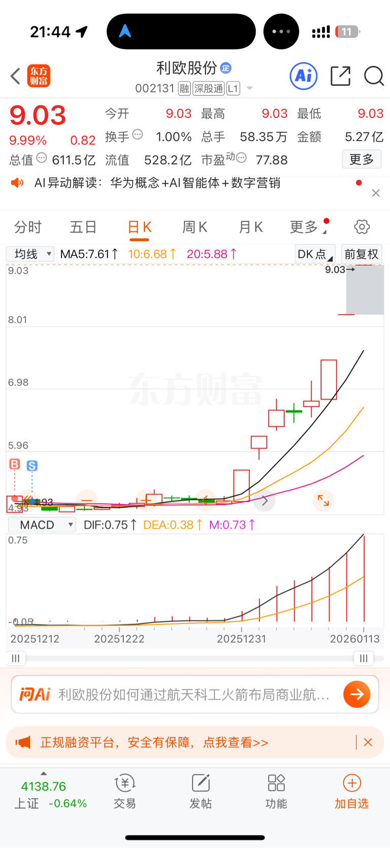 $利欧股份(SZ002131)$ 你提前2周涨有什么问题吗