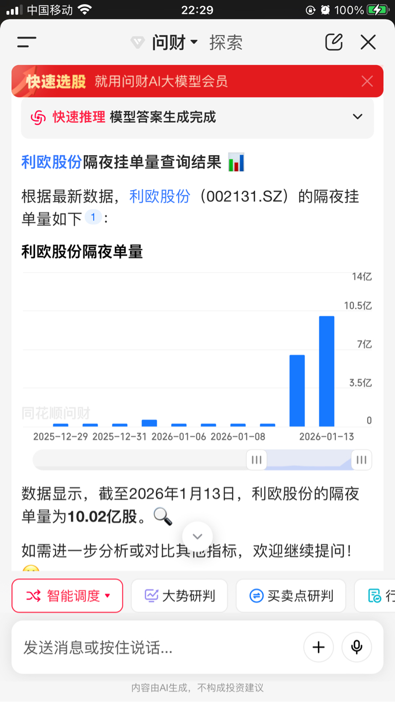 隔夜挂单10.02亿股,不知道这个数据真实不真实。