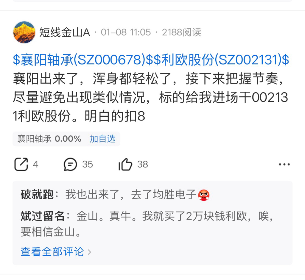$利欧股份(SZ002131)$ 早上好兄弟姐妹们,老规矩,先点赞报道关注支持一下,金山手中的标没有做完是不会误导大家进下一个标的的,有仓位的耐心等待,跟上了利欧的粉丝等待下车的信号
