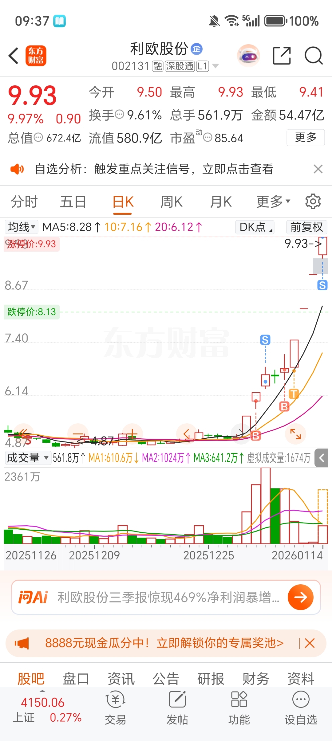 $利欧股份(SZ002131)$ 乌龙指了,想买入点成卖出了