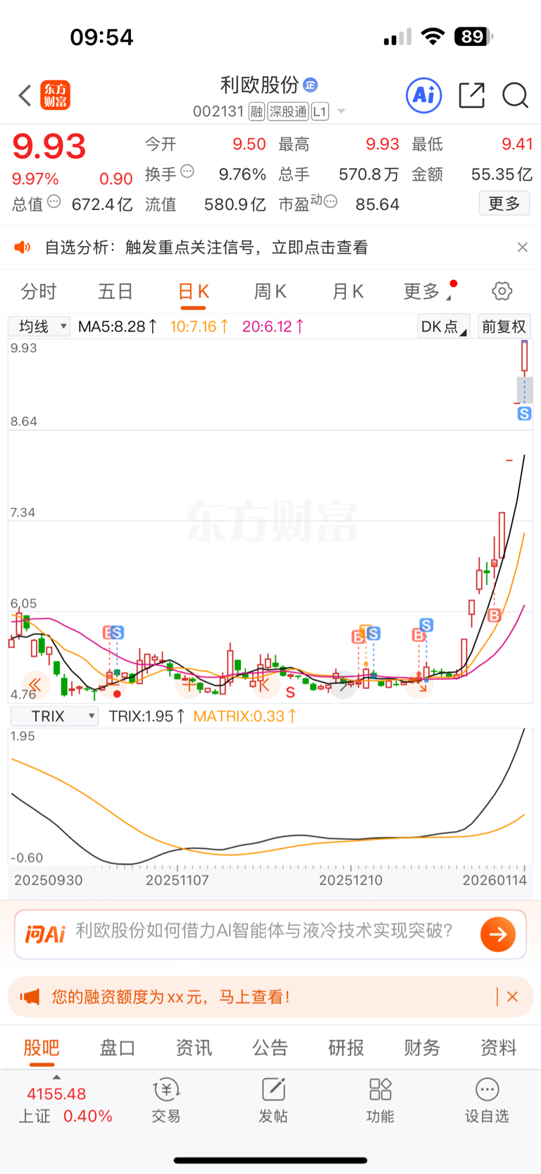 $利欧股份(SZ002131)$ 拿了四个板走了,今早开盘冲高就卖了,承认有点手快后悔了,但已经卖了,还是希望继续涨吧,祝刚上车的朋友都吃上肉。