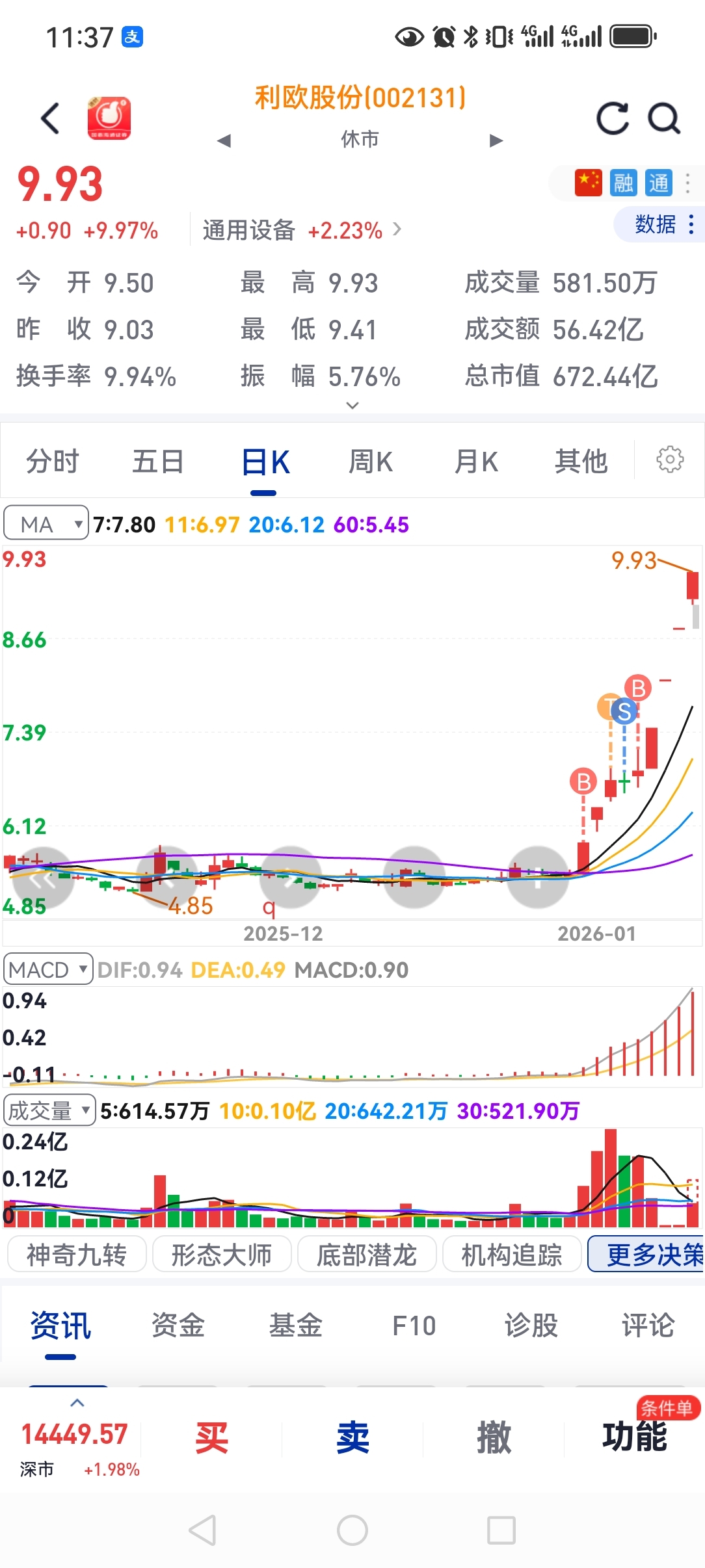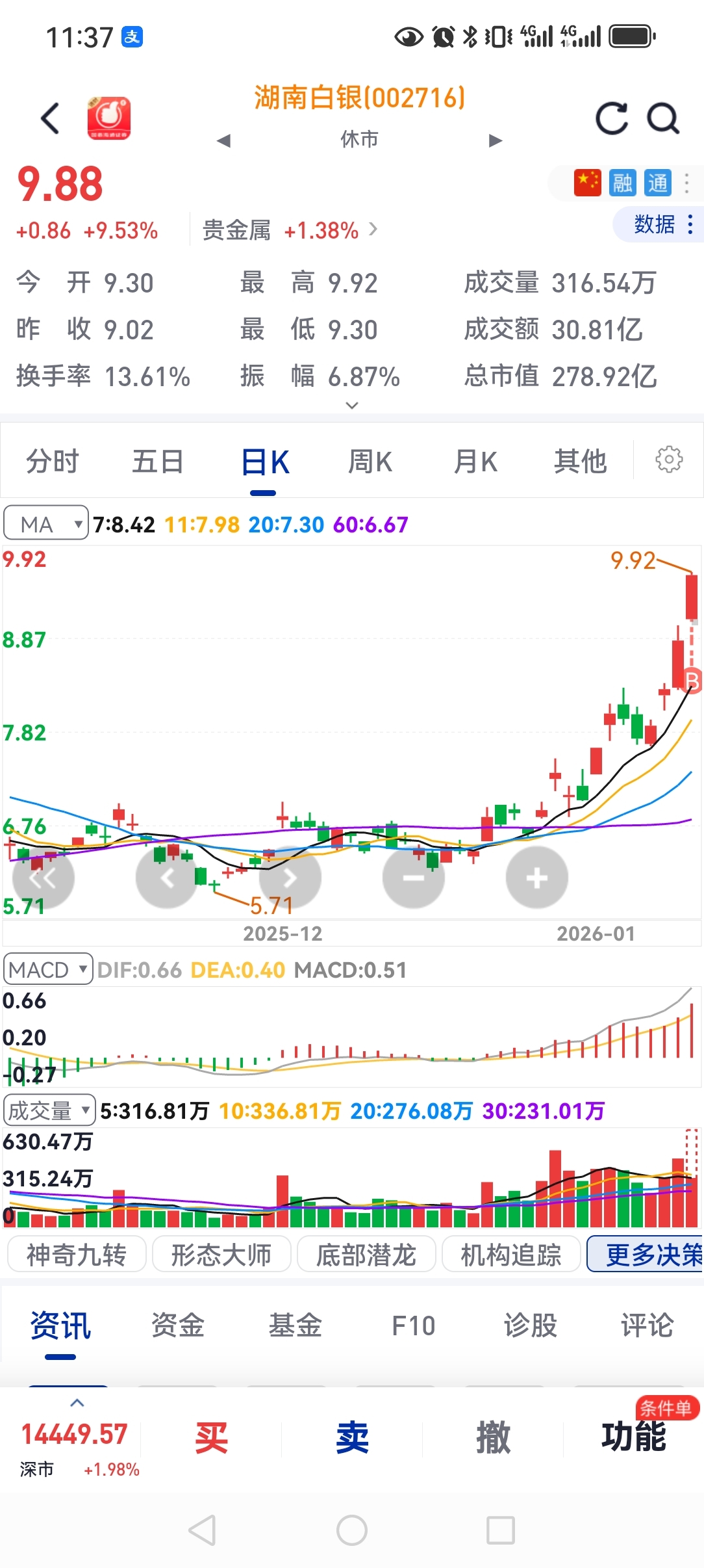 发觉最近创业板选股水平不错,就是没拿住,还好利欧给了安慰,2周多前在所有白银股票里选了个湖南白银让朋友满仓,那时才6块多,唉