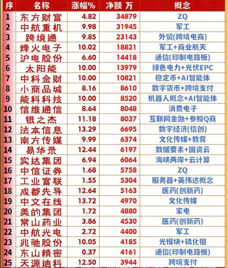 1.14周三主力资金尾盘抢筹个股榜!尾盘10分钟抢筹,主力净流入智能体ai应用,