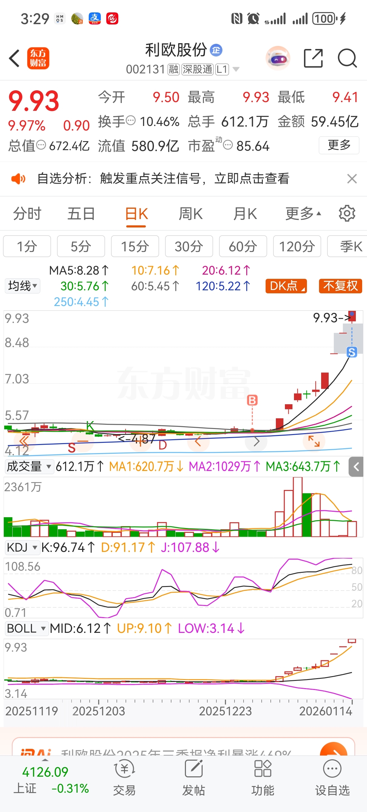 $利欧股份(SZ002131)$ 5.5万股今天早盘打开被吓跑了:又看到封板:心都凉了半截!!明天还能不能给机会进去!