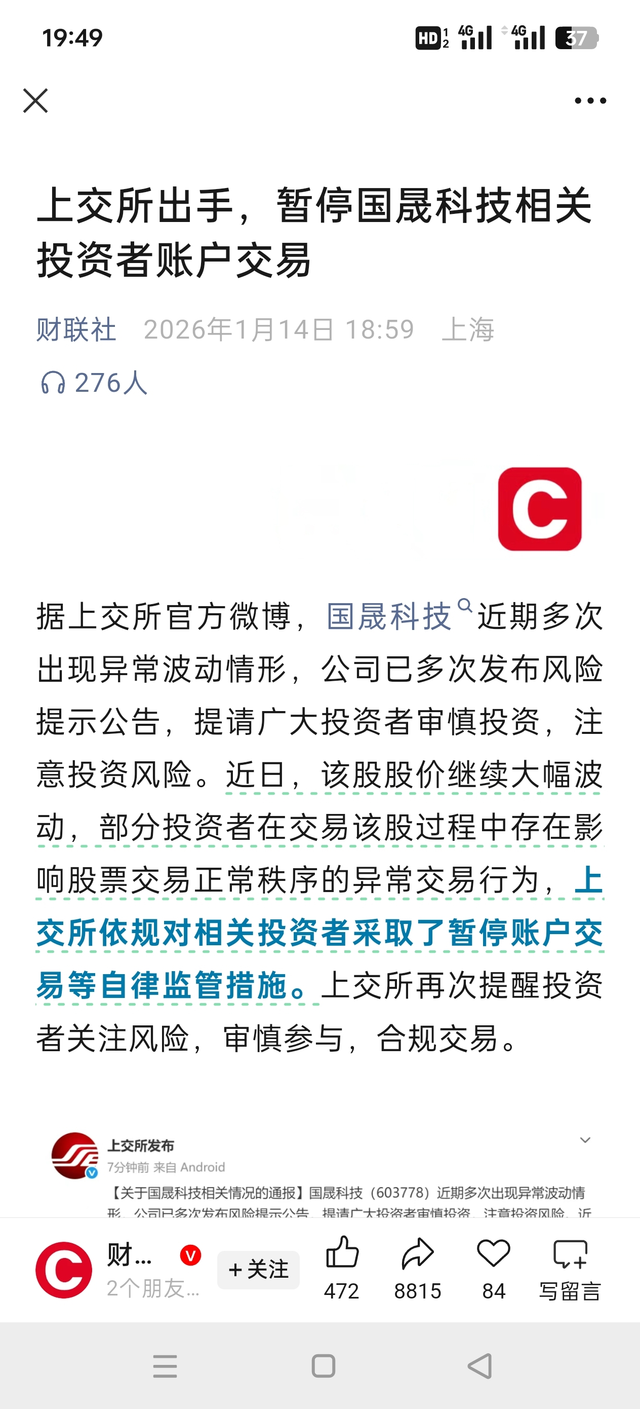 温馨提示: 1.根据《证券法》规定,禁止编造、传播虚假信息或者误导性信息,扰乱证券市场;2.用户在本社区发表的所有资料、言论等仅代表个人观点,与本网站立场无关,不对您构成任何投资建议。用户应基于自己的独立判断,自行决定证券投资并承担相应风险。《东方财富社区管理规定》