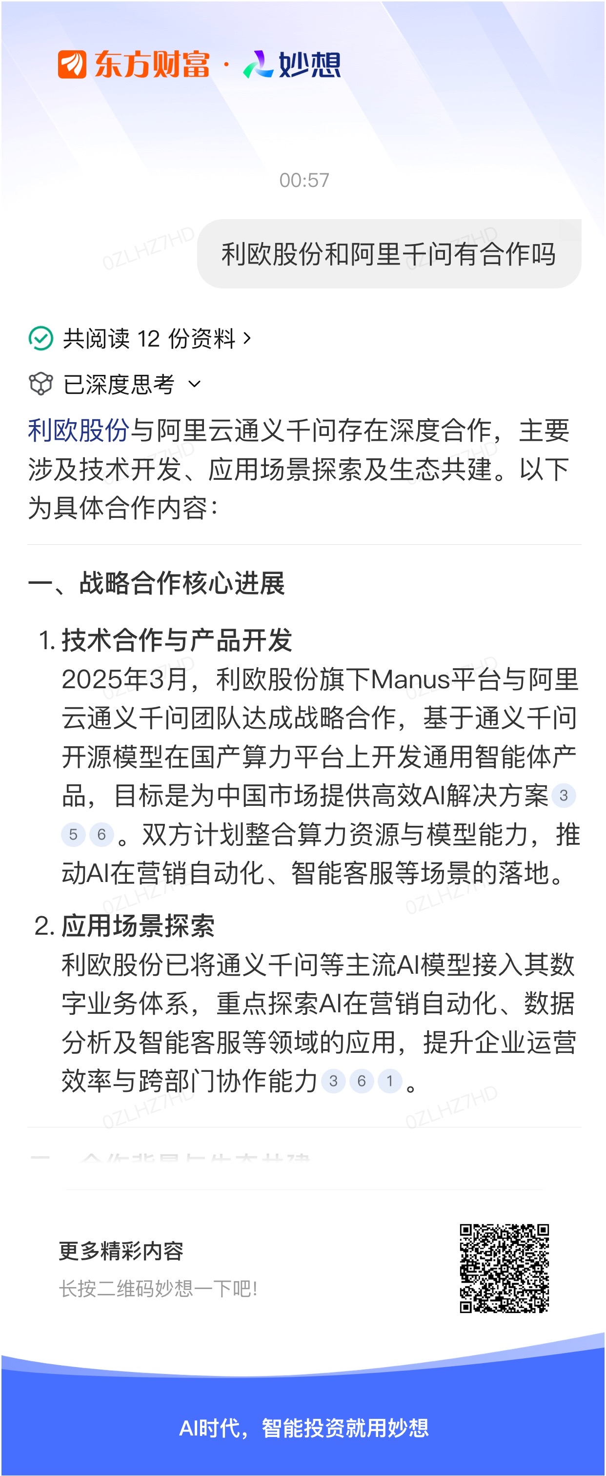 #@妙想,你怎么看?# 妙想一下:利欧股份和阿里千问有合作吗?