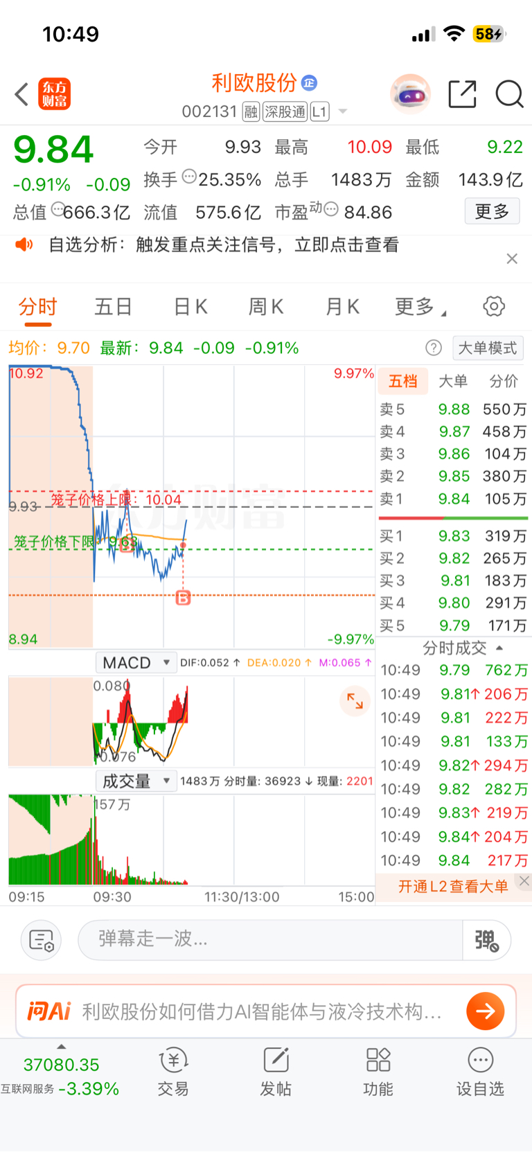 $利欧股份(SZ002131)$ 这个成交量不会没有溢价空间!