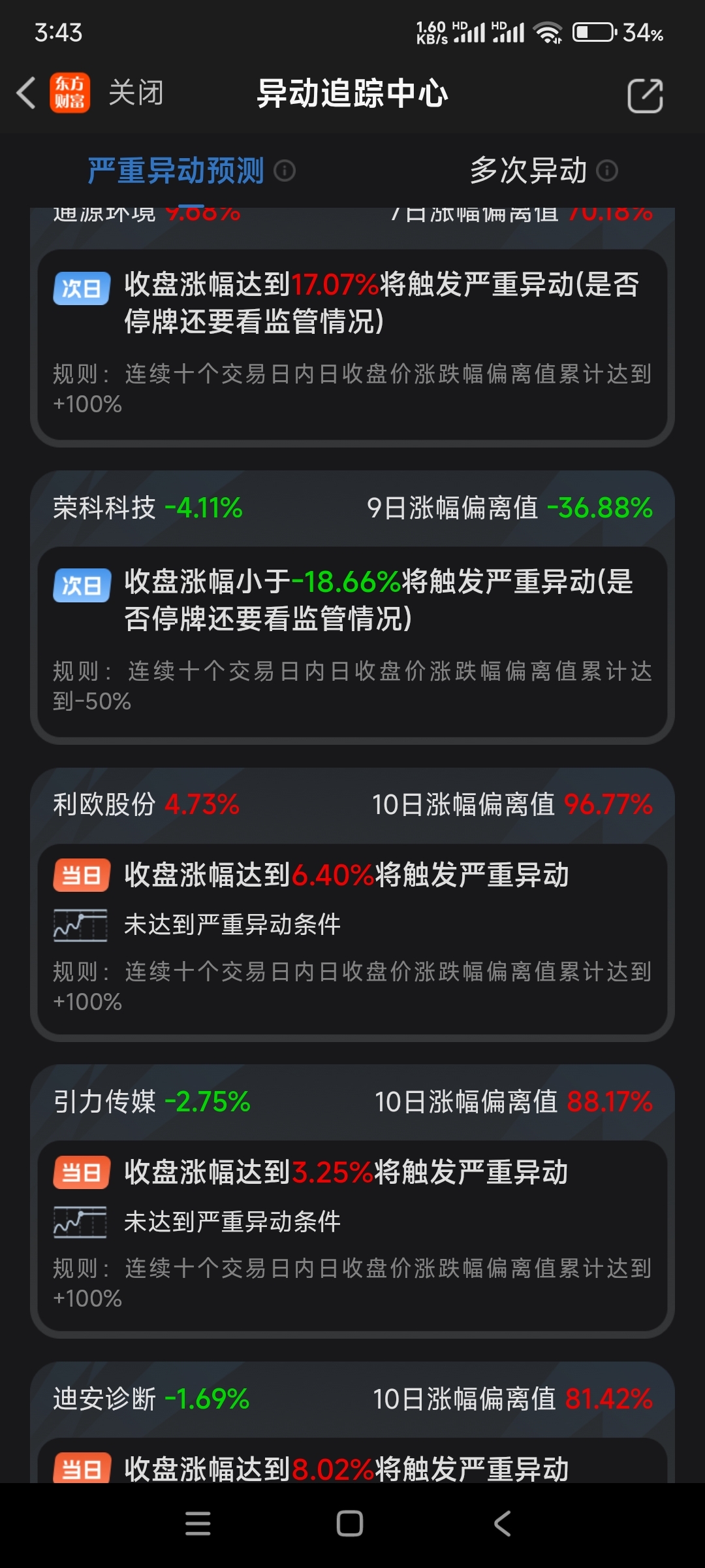 想知道股票有没有异动的,直接在东方财富里面搜异动追踪中心。
