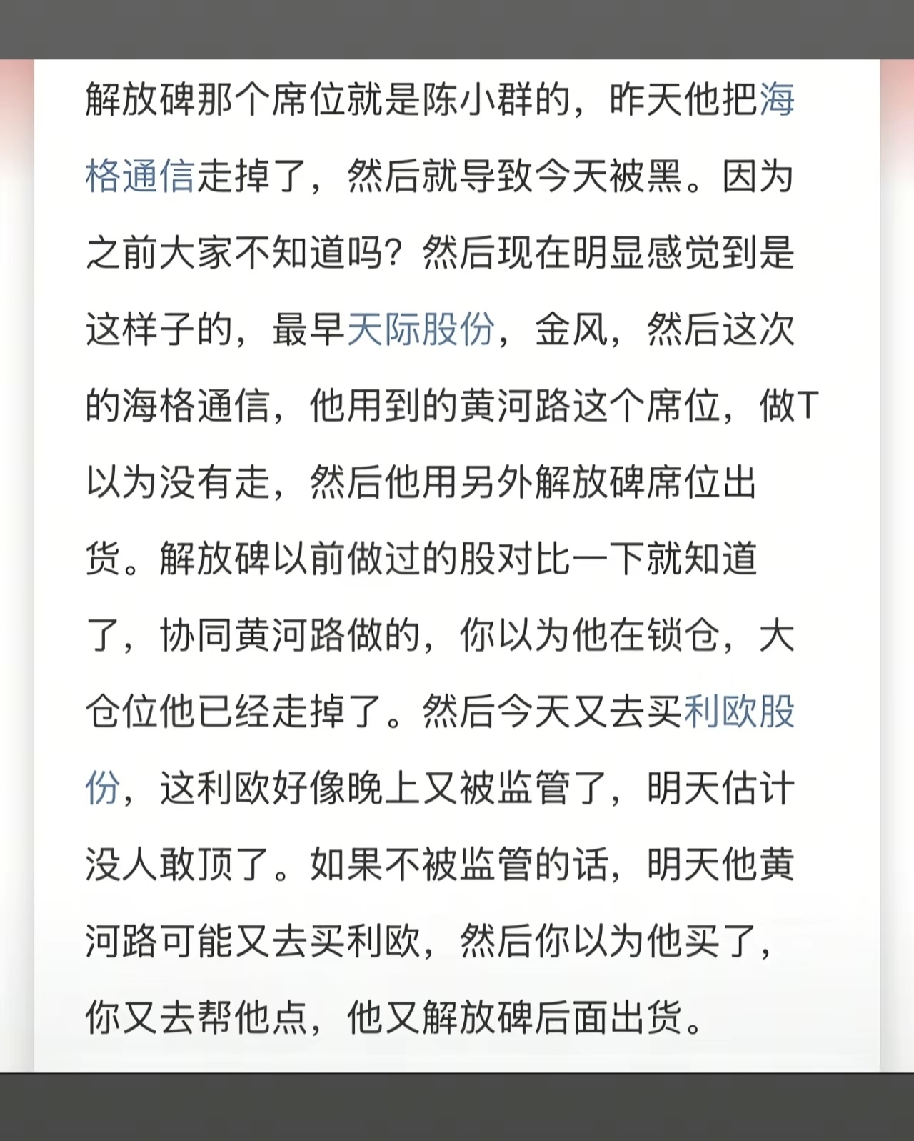 温馨提示: 1.根据《证券法》规定,禁止编造、传播虚假信息或者误导性信息,扰乱证券市场;2.用户在本社区发表的所有资料、言论等仅代表个人观点,与本网站立场无关,不对您构成任何投资建议。用户应基于自己的独立判断,自行决定证券投资并承担相应风险。《东方财富社区管理规定》