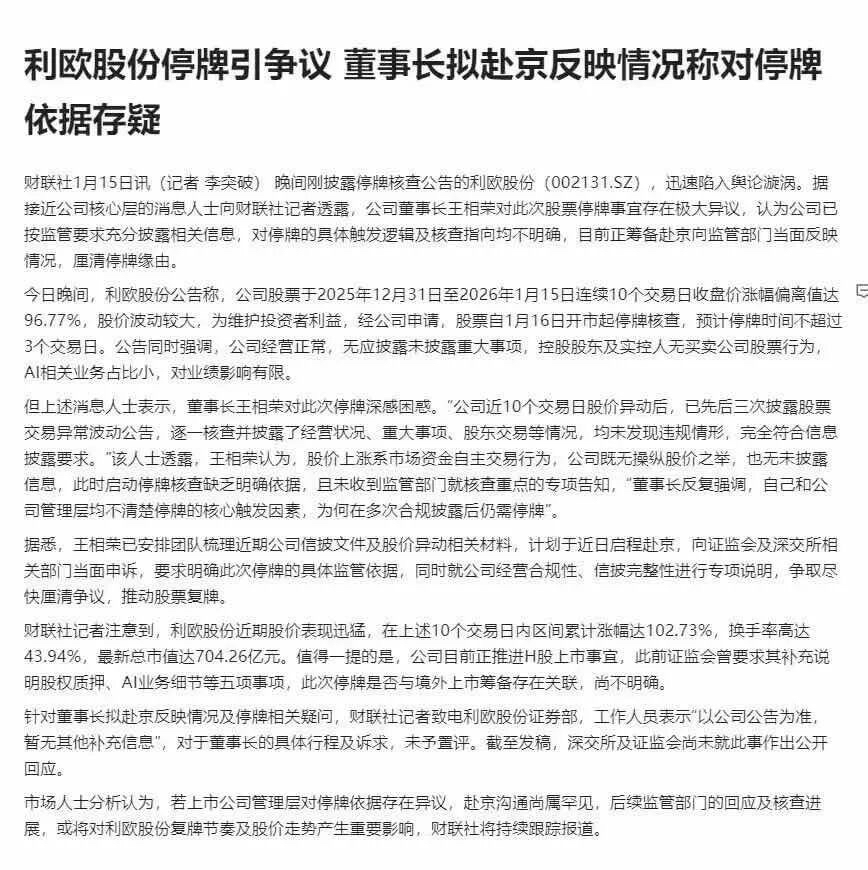 有后续消息出来吗?支持利欧董事,说实话不能无缘无故停牌