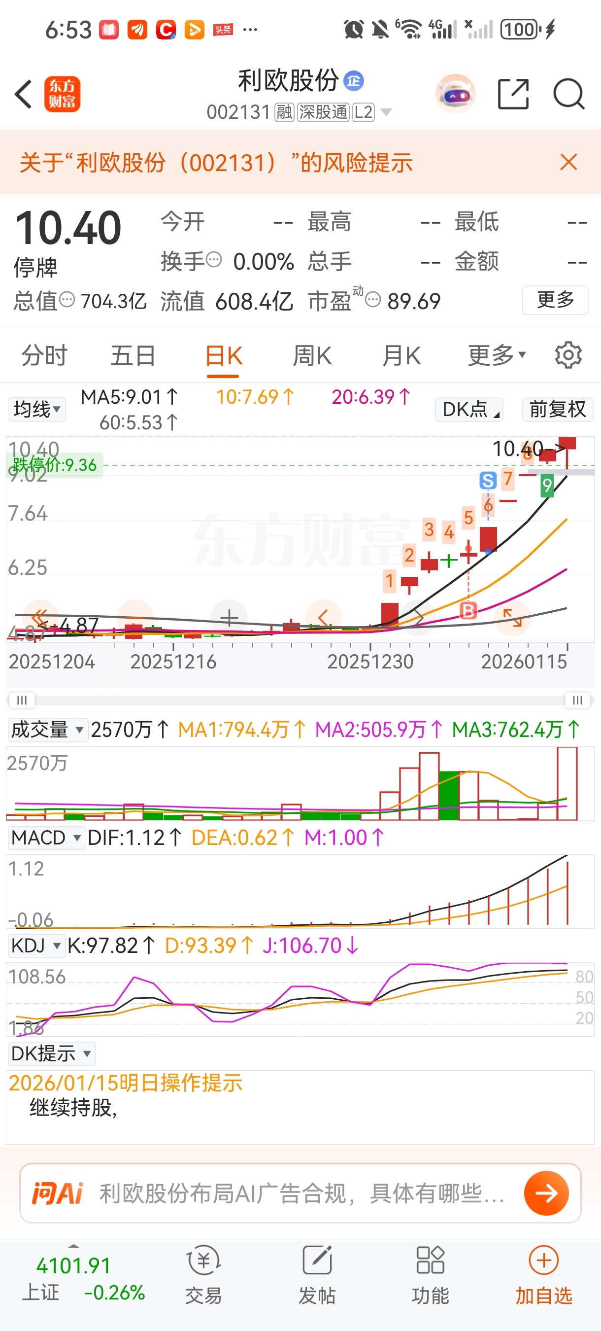 温馨提示: 1.根据《证券法》规定,禁止编造、传播虚假信息或者误导性信息,扰乱证券市场;2.用户在本社区发表的所有资料、言论等仅代表个人观点,与本网站立场无关,不对您构成任何投资建议。用户应基于自己的独立判断,自行决定证券投资并承担相应风险。《东方财富社区管理规定》
