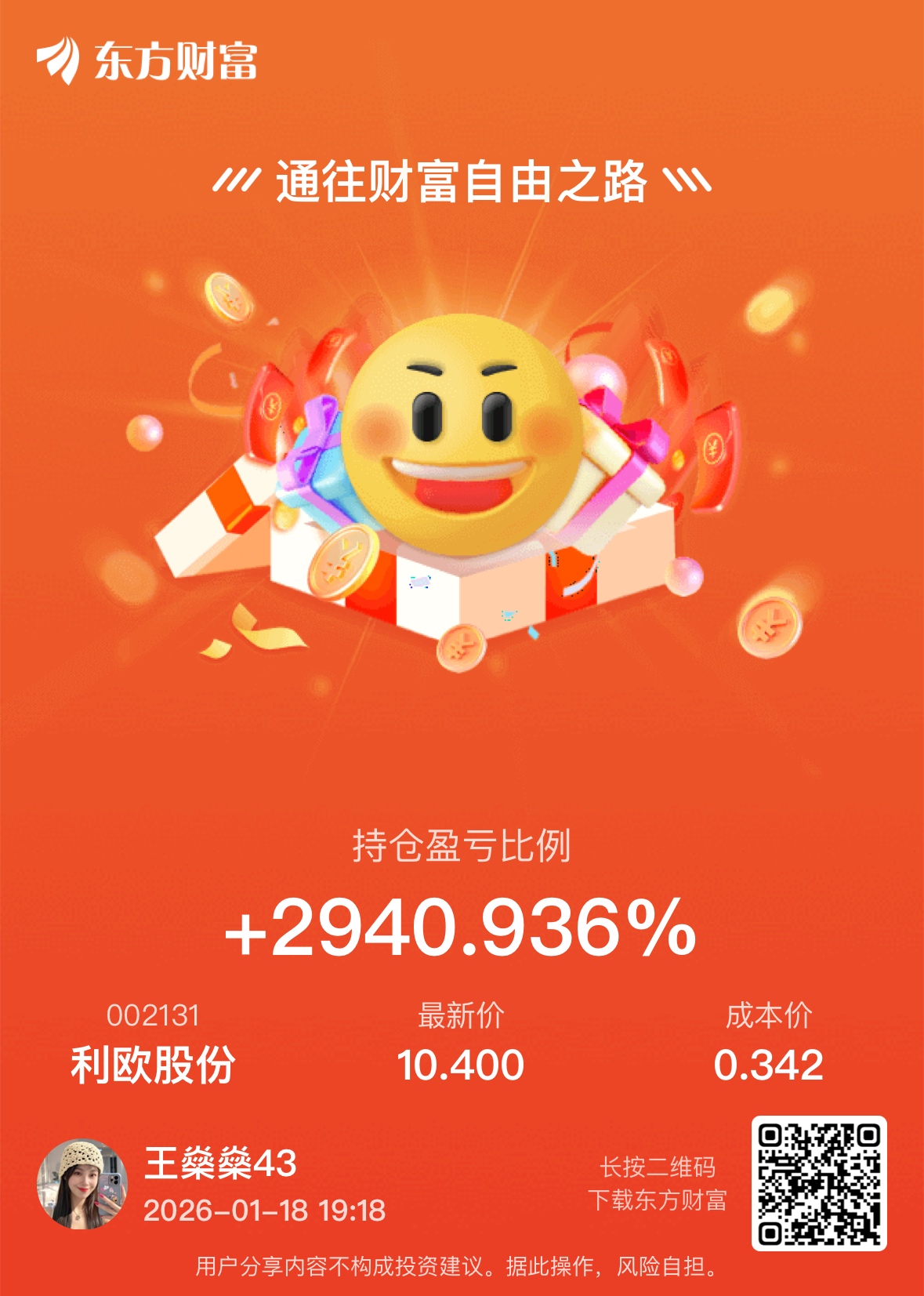 郑重声明:用户在财富号/股吧/博客等社区发表的所有信息(包括但不限于文字、视频、音频、数据及图表)仅代表个人观点,与本网站立场无关,不对您构成任何投资建议,据此操作风险自担。请勿相信代客理财、免费荐股和炒股培训等宣传内容,远离非法证券活动。请勿添加发言用户的手机号码、公众号、微博、微信及QQ等信息,谨防上当受骗!