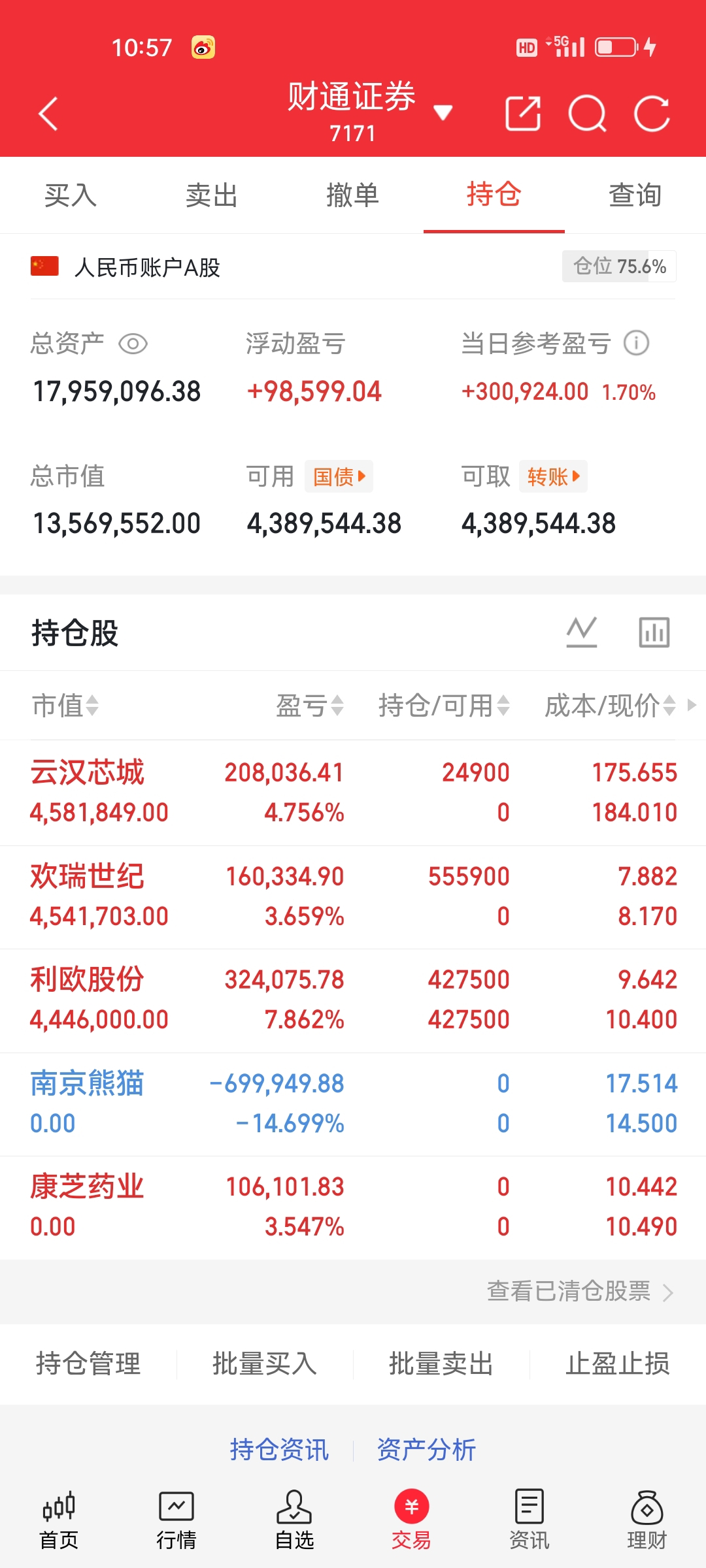 1.20炒股养家实盘:止损南京熊猫,康芝药业盈利落袋;持有$利欧股份(SZ002131)$ 待涨,新入$云汉芯城(SZ301563)$ $欢瑞世纪(SZ000892)$ 盼花开~ 实战记录不掺水,股友交流共成长,点赞评论皆有回!