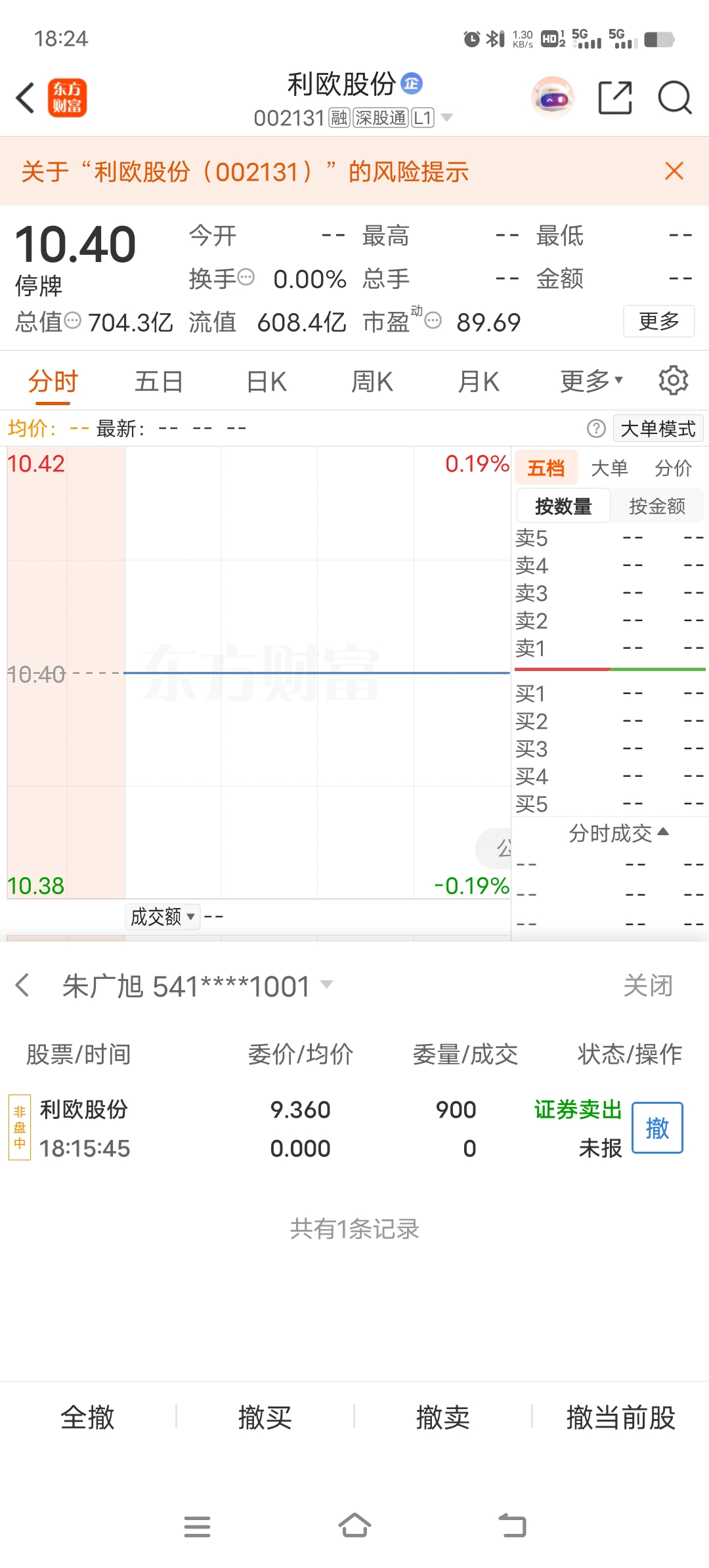 $利欧股份(SZ002131)$ 挂跌停卖,避险第一,反正亏也就是5%