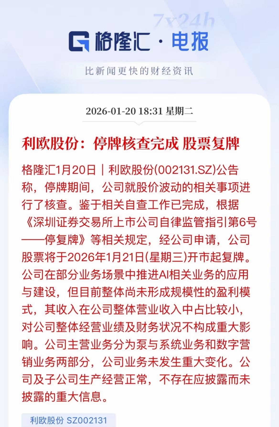 放出小黑屋了,错杀的利欧宣布:停牌核查完成,明天复牌,利欧从12月31日开始启动