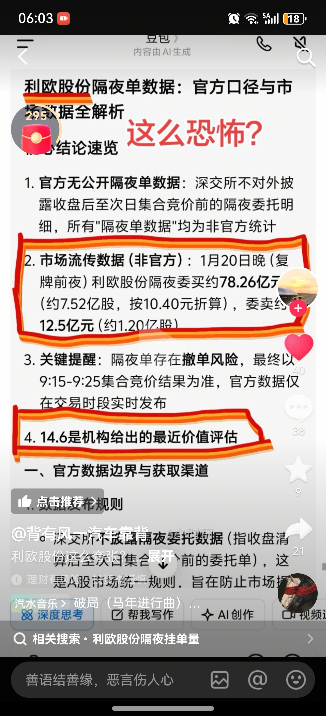 郑重声明:用户在财富号/股吧/博客等社区发表的所有信息(包括但不限于文字、视频、音频、数据及图表)仅代表个人观点,与本网站立场无关,不对您构成任何投资建议,据此操作风险自担。请勿相信代客理财、免费荐股和炒股培训等宣传内容,远离非法证券活动。请勿添加发言用户的手机号码、公众号、微博、微信及QQ等信息,谨防上当受骗!