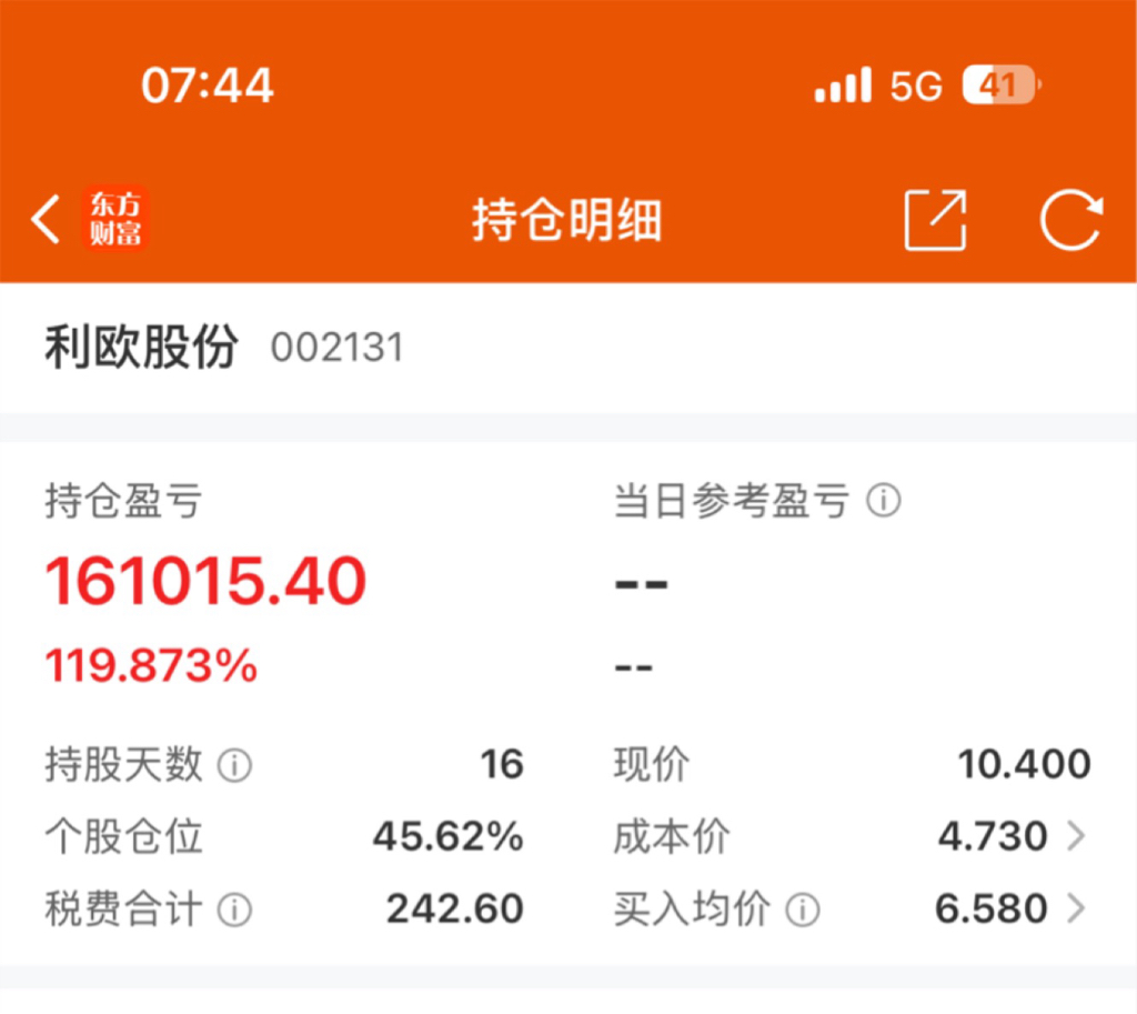 $利欧股份(SZ002131)$ 120%利润,气死空狗