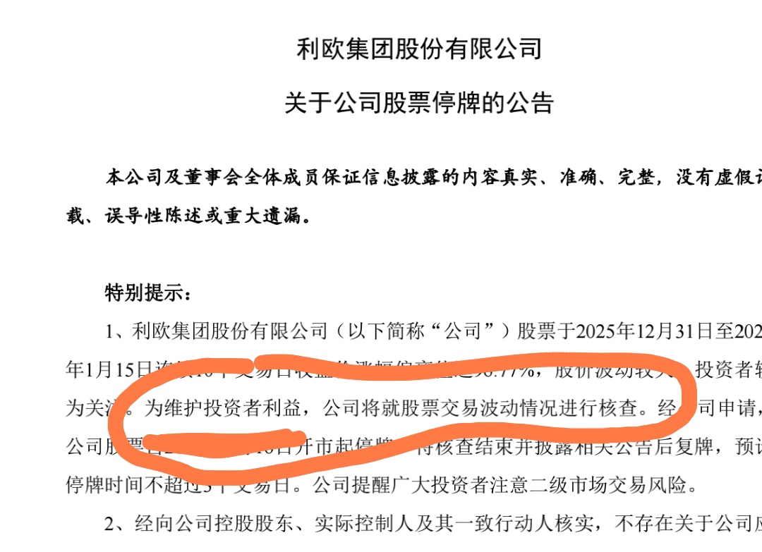 这就是利欧股份为了维护投资者的利益,故意停牌,跌停板贱卖股份